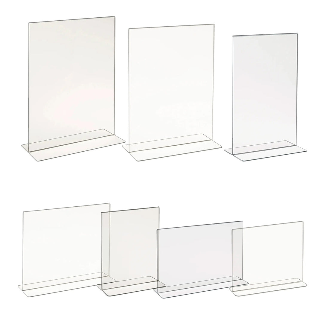 Our acrylic sign holders come in wide range of sizes and styles including bottom loading, wall mount, slant back, multi-panel, top loading and brochure sign combo versions. These sign holders, also called card holders and sign stands are great as table top sign holders , counter top or wall mount signs. Use them in your office, store, business, school or anywhere space is limited.