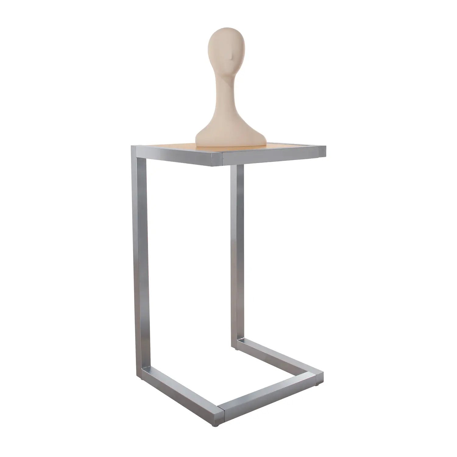 Ideal height for featured items - 42" overall floor to top. 2" square satin chrome steel tubing. 3/4" thick MDF/Melamine top in hard rock maple finish.