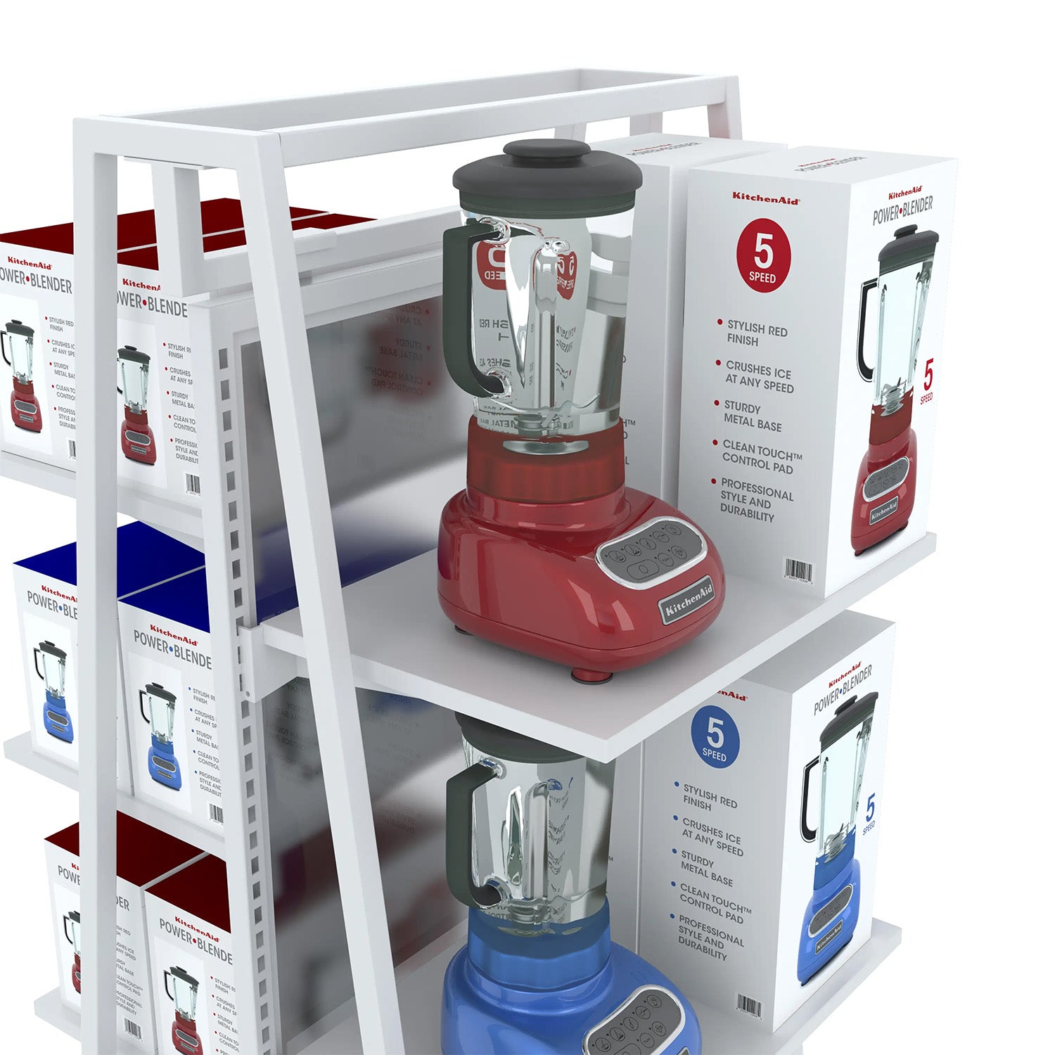 This kit is available in a Matte Black or Gloss White finish that easily matches any retail interior. Includes levelers. Wood insert on base has multiple finishes. Overall dimensions of the merchandiser is 62" high x 24" wide x 24" long.