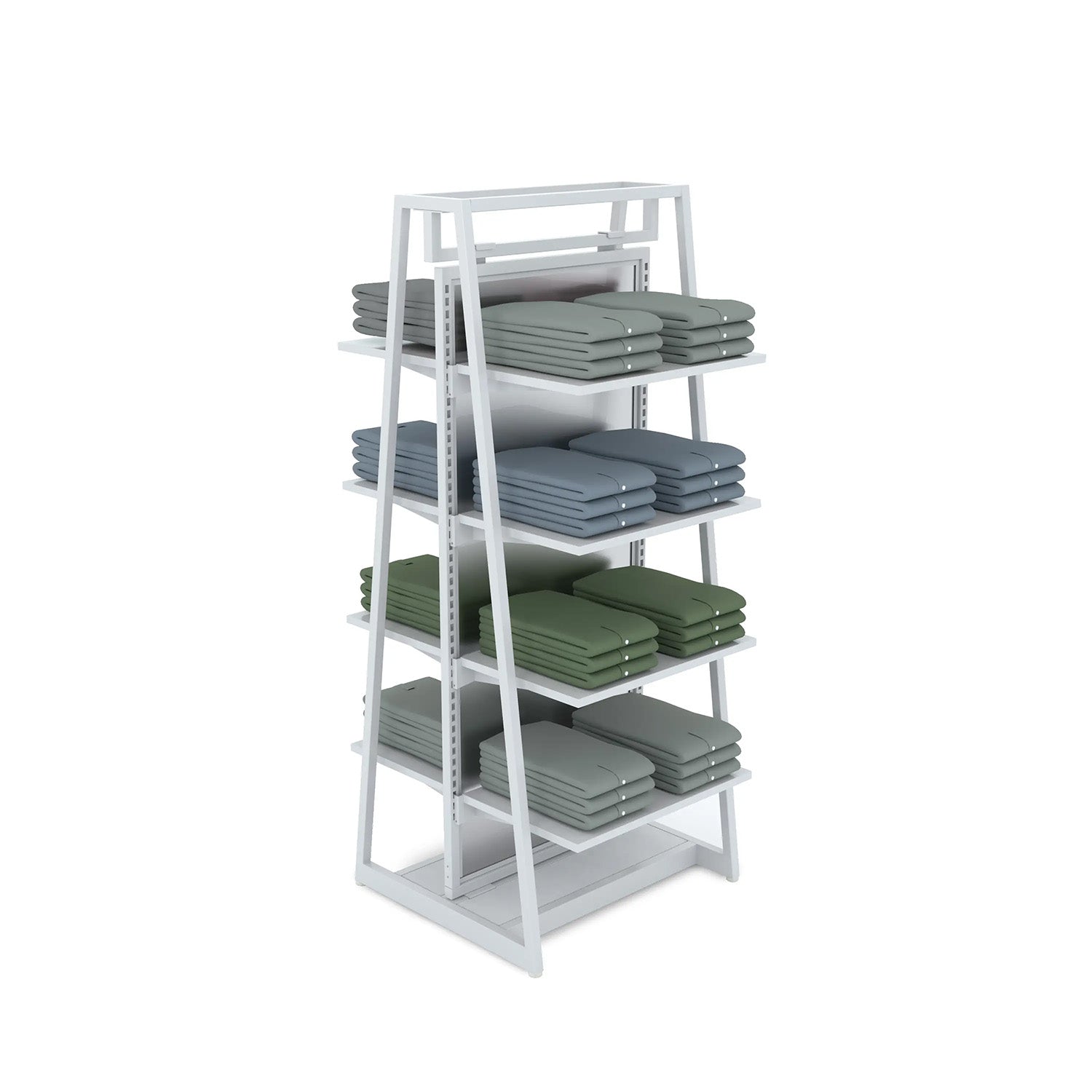 The Aspect 24" Floor Merchandiser Kit 3 is the perfect shelving display but with obvious panache. We give you a total of eight shelves that are each independently adjustable in height. The merchandiser is the ideal way to display folded garments, packaged hard goods or a combination of both.