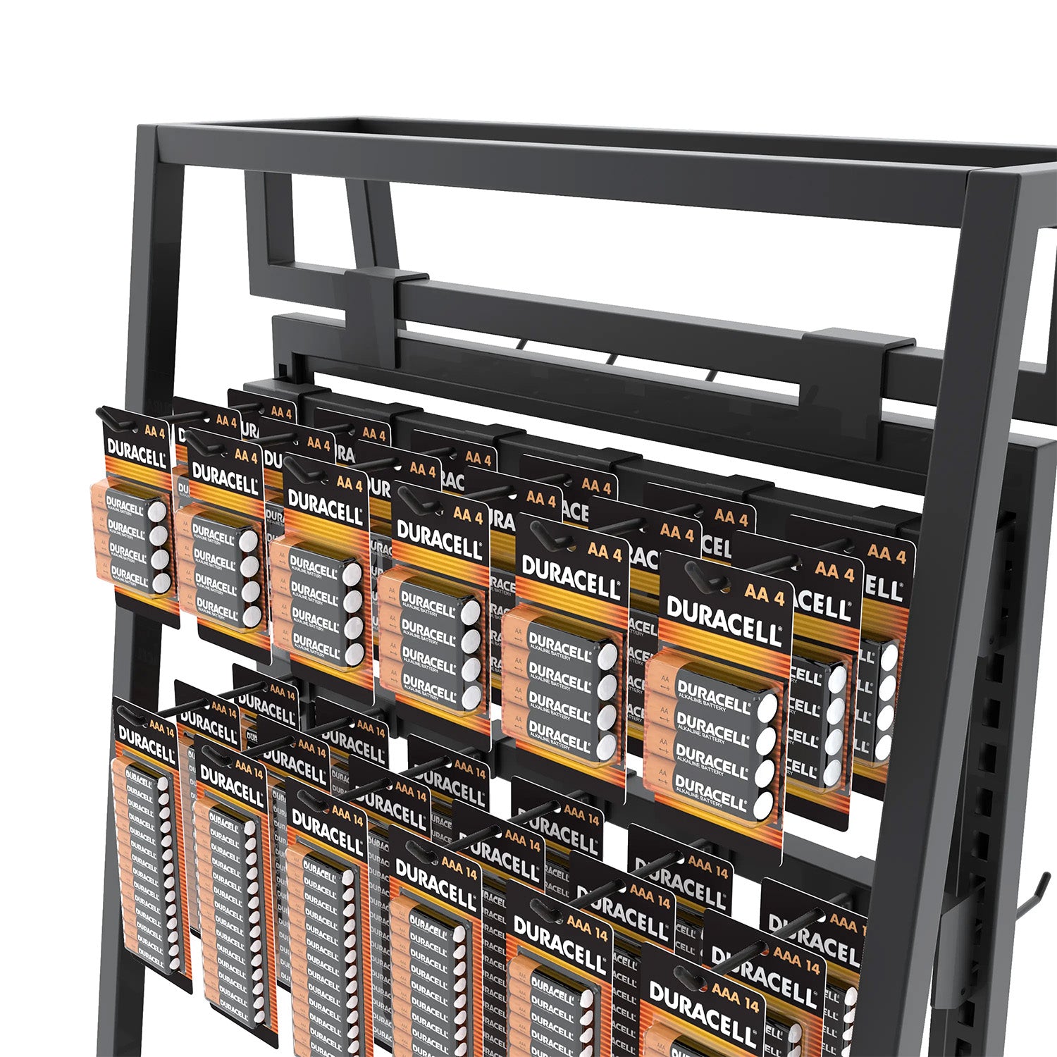 The Aspect 24" Floor Merchandiser Kit 4 is ideal in most retail environments where carded merchandise needs to be displayed. Perfect for socks, packaged goods, candy, craft supplies, etc. This unit gives you the ability to mix and match various sizes of product with the infinite height adjustability of the display bars that the hooks mount to.