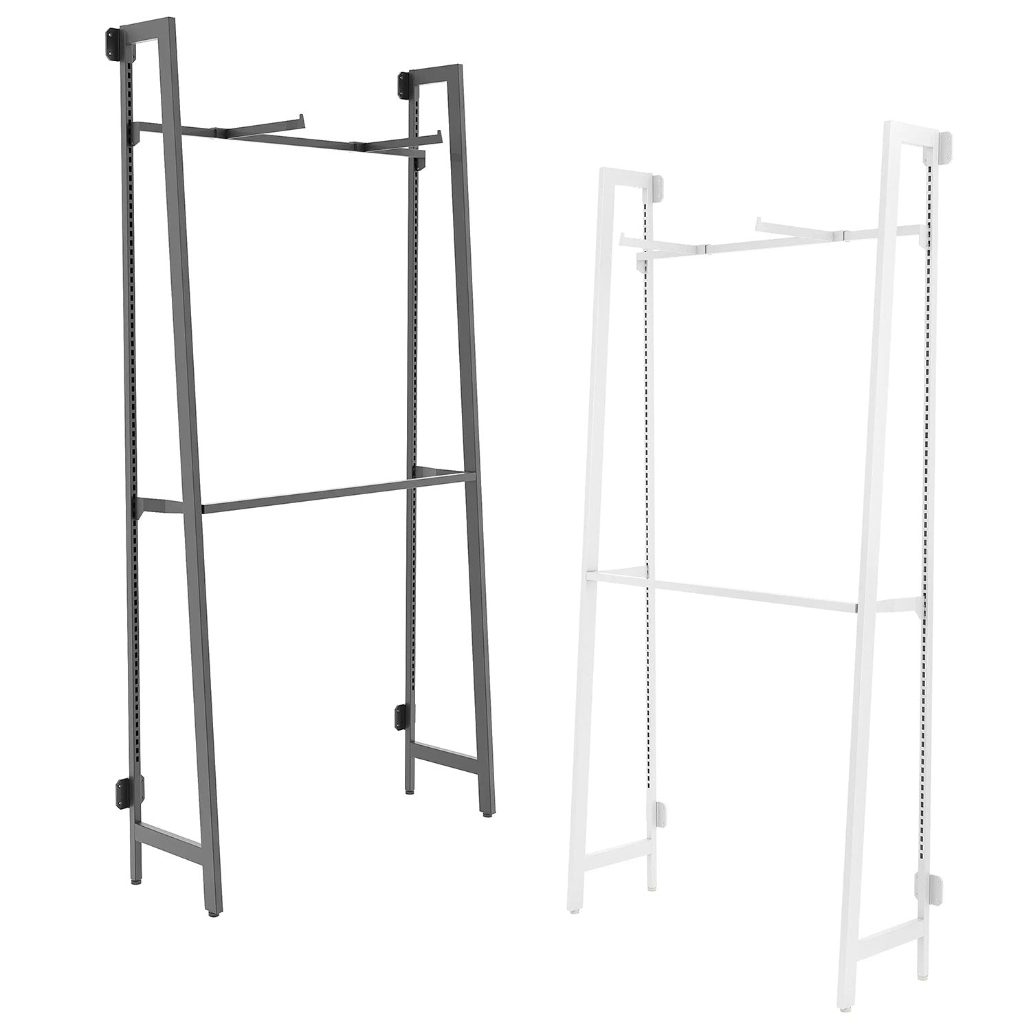 To expand on your display kit, we offer a wide variety of display accessories in a nominal dimension of 24" or 48" wide. The Outrigger uprights are designed to be mounted 23" or 47" on center, to a long wall giving you virtually any length retail display unit that you'll need. When you purchase two Outrigger units and set them up 23” or 47” apart, you essentially gain a third display for the price of two.