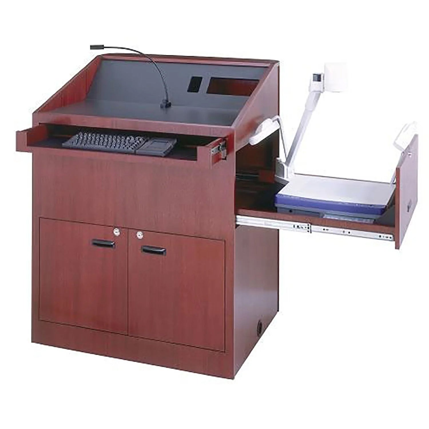 Multimedia Wood Veneer Lectern Radius Front Corners w/Flat Work Surface
