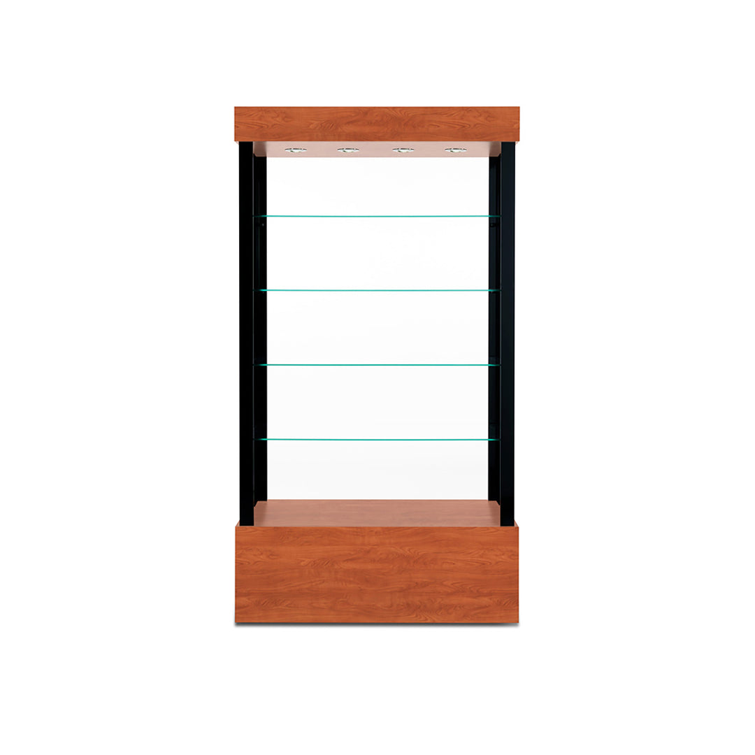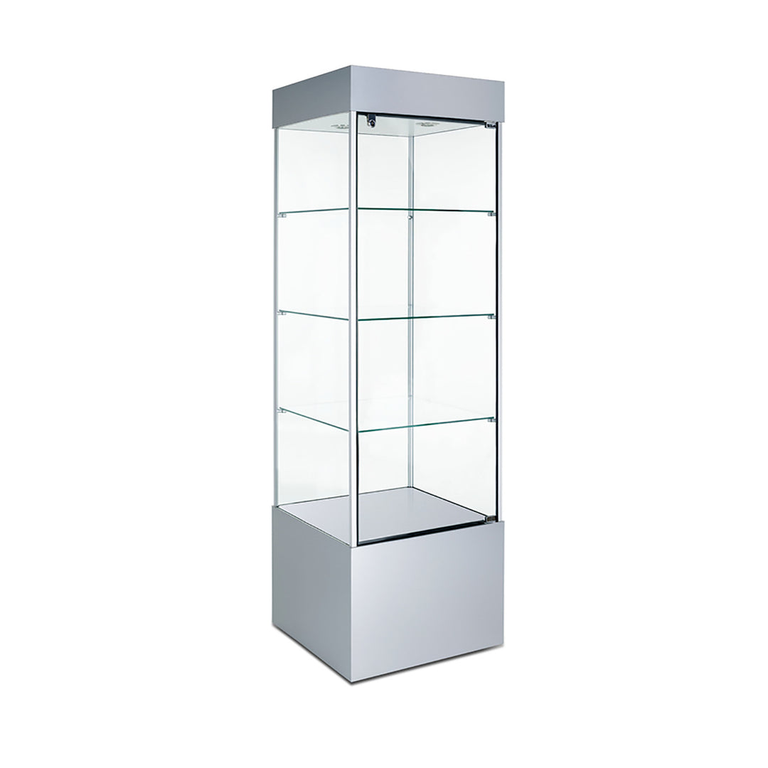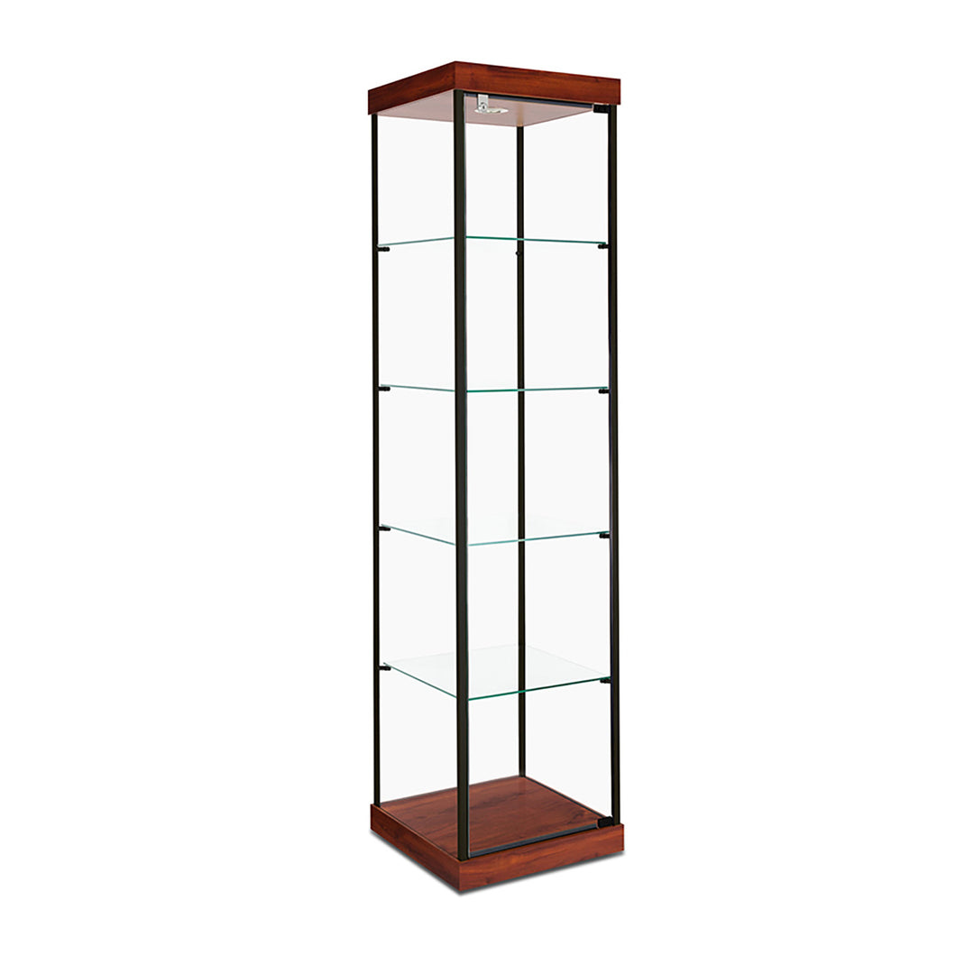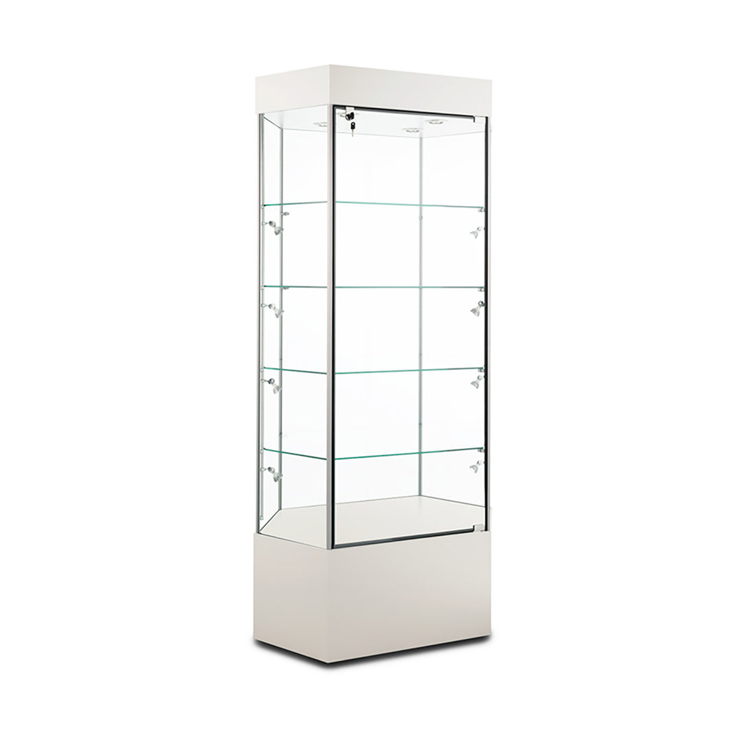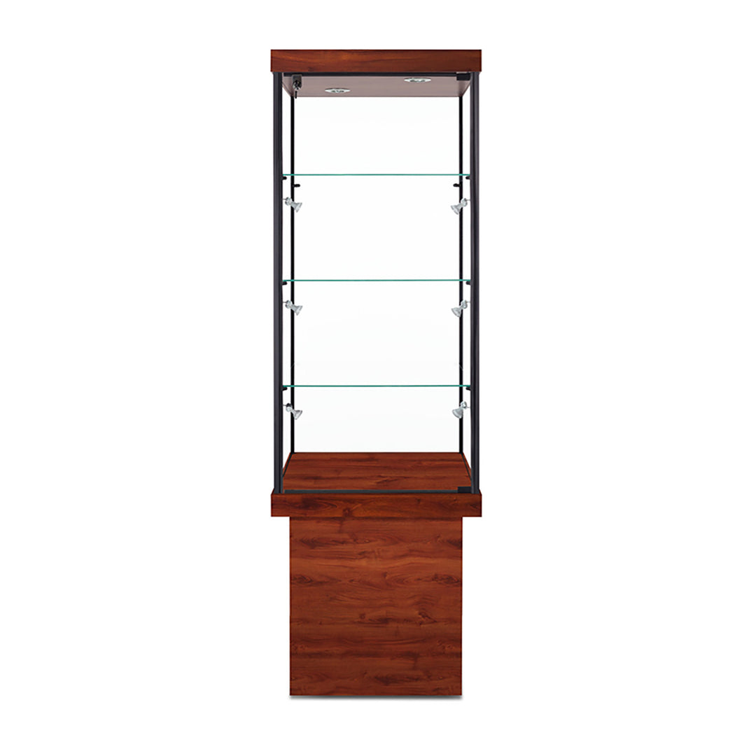 The Modern Series includes tower display cases, wall mounted display cases, wall display cases and small counter top display cases. Other types in this series include cash wrap counters and jewelry display cases. Made with aluminum frames and laminated bases and canopies as well as wood cases in several finishes. In addition to halogen top lights in the canopy, many have the option of adding side lights to further highlight the contents in the showcase display. These showcases can be used in a variety of settings such as retail stores, corporate lobby areas, schools or anywhere a clean modern display case is desired. Suitable for use with a range of merchandise such as jewelry, collectibles, electronics and any other fragile or high value items where there is a need for a secure attractive display.