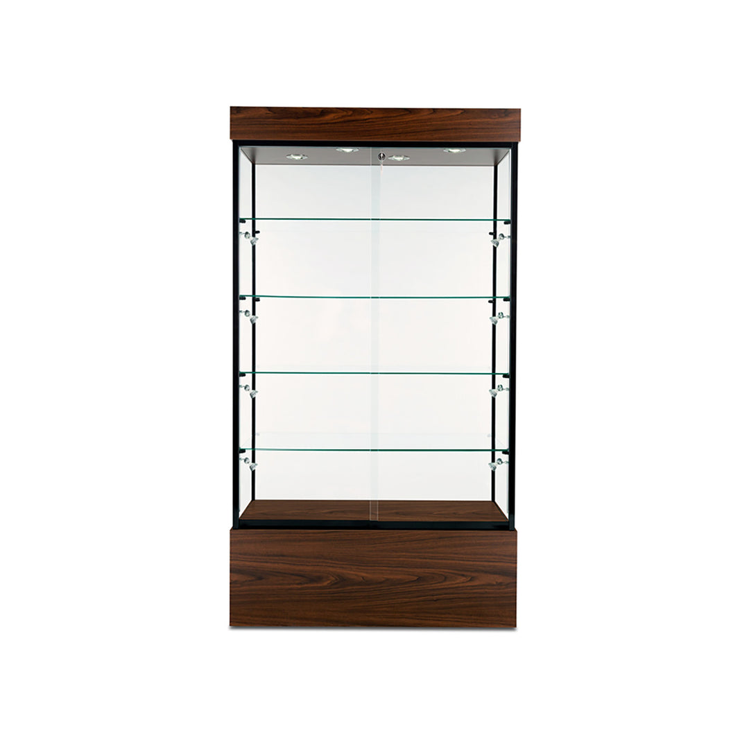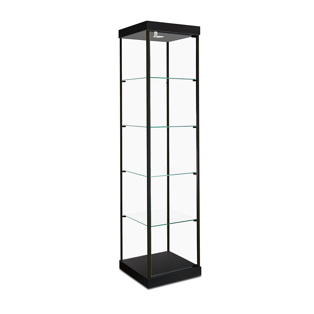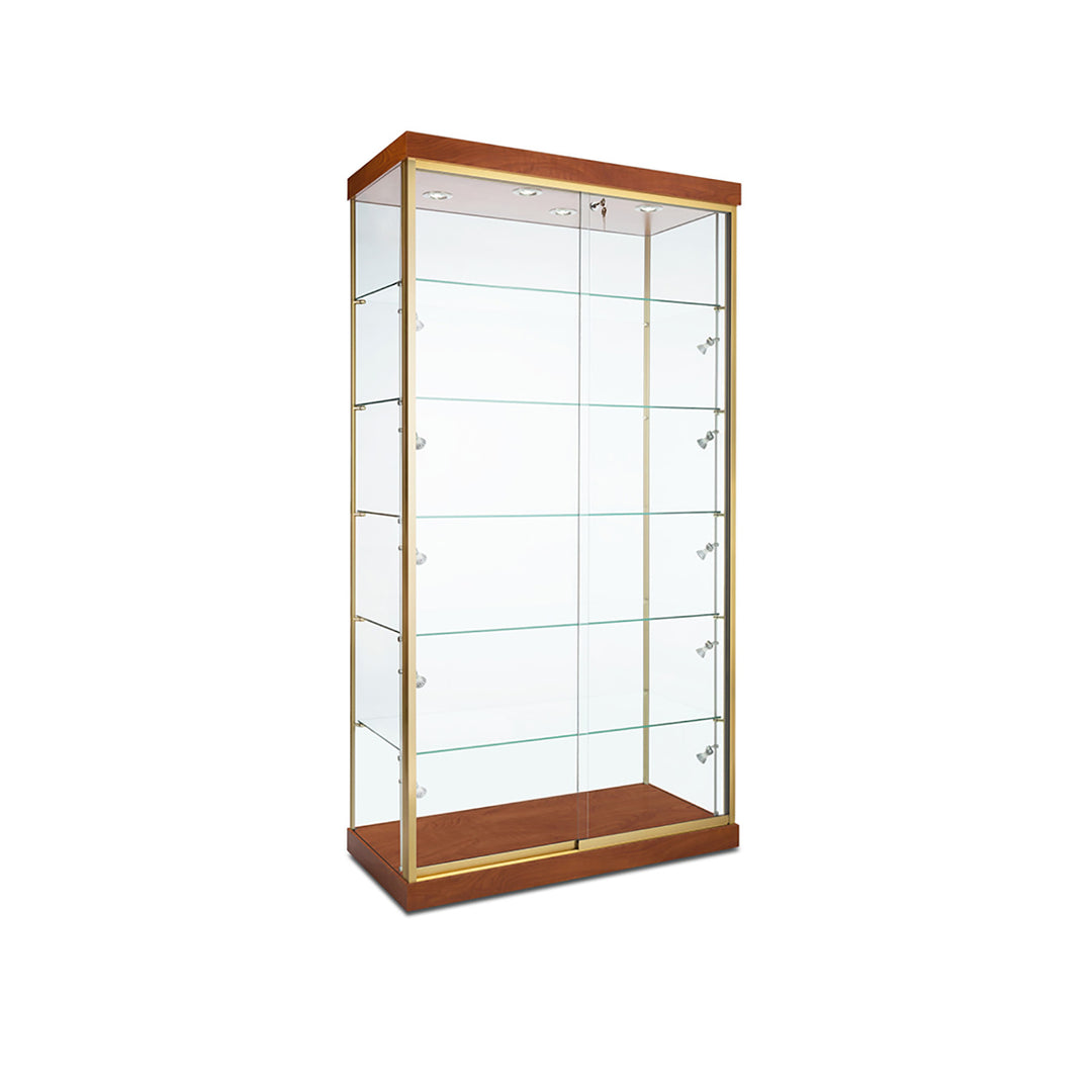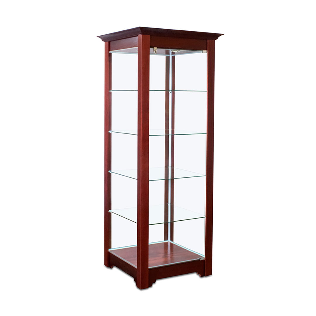 The Modern Series includes tower display cases, wall mounted display cases, wall display cases and small counter top display cases. Other types in this series include cash wrap counters and jewelry display cases. Made with aluminum frames and laminated bases and canopies as well as wood cases in several finishes. In addition to halogen top lights in the canopy, many have the option of adding side lights to further highlight the contents in the showcase display. These showcases can be used in a variety of settings such as retail stores, corporate lobby areas, schools or anywhere a clean modern display case is desired. Suitable for use with a range of merchandise such as jewelry, collectibles, electronics and any other fragile or high value items where there is a need for a secure attractive display.