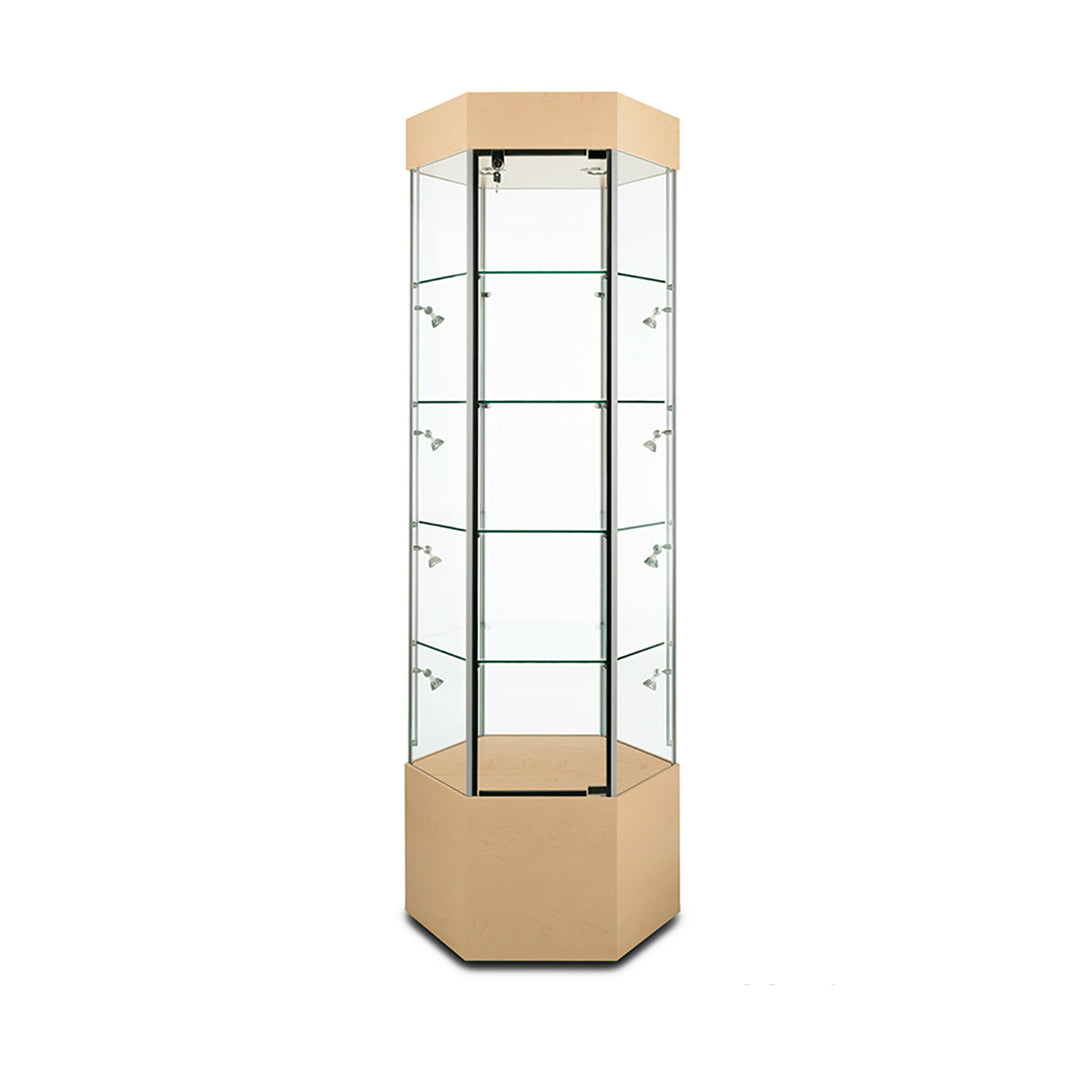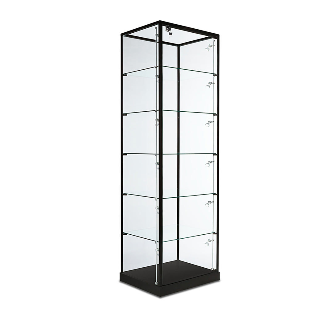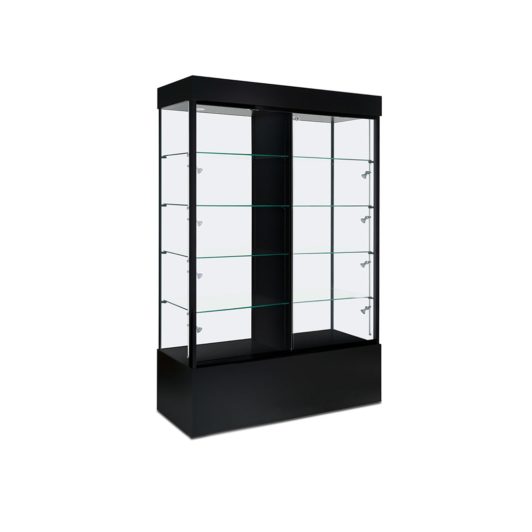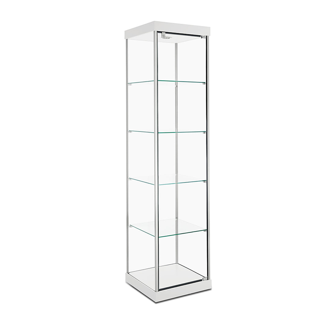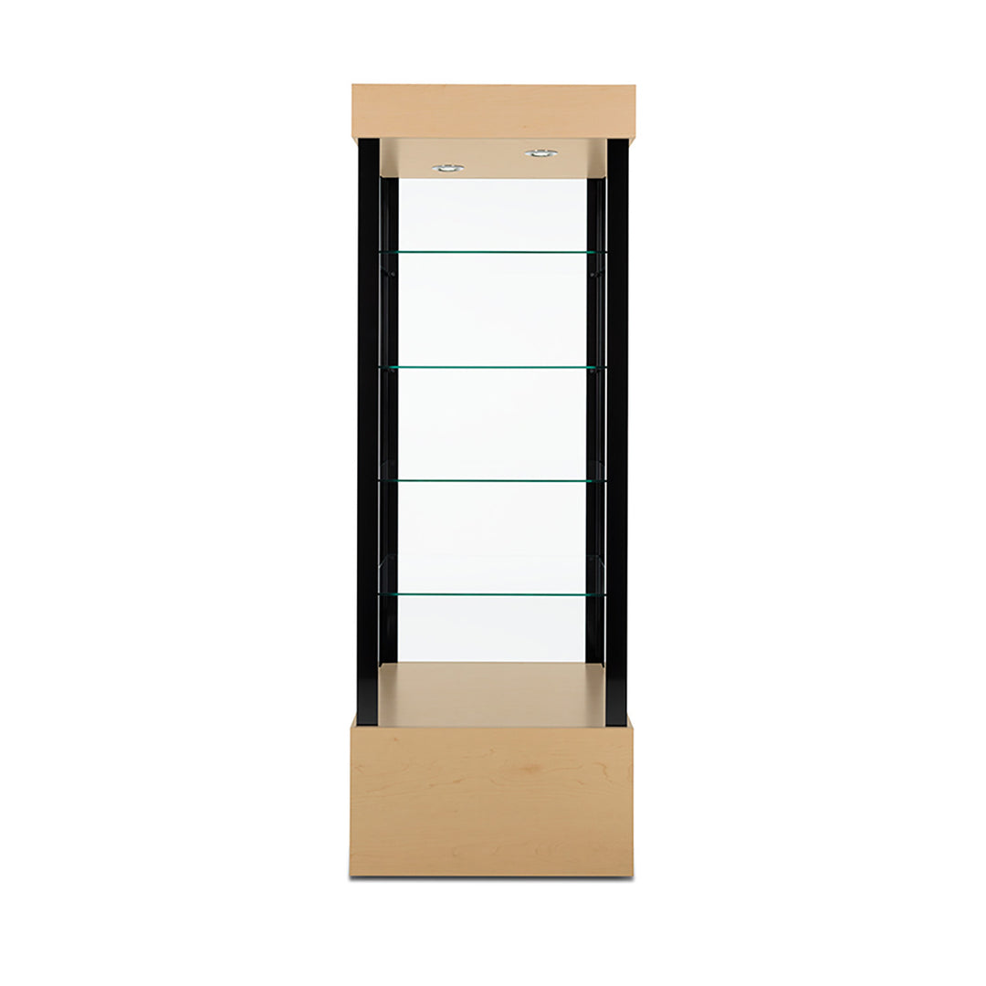 The Modern Series includes tower display cases, wall mounted display cases, wall display cases and small counter top display cases. Other types in this series include cash wrap counters and jewelry display cases. Made with aluminum frames and laminated bases and canopies as well as wood cases in several finishes. In addition to halogen top lights in the canopy, many have the option of adding side lights to further highlight the contents in the showcase display. These showcases can be used in a variety of settings such as retail stores, corporate lobby areas, schools or anywhere a clean modern display case is desired. Suitable for use with a range of merchandise such as jewelry, collectibles, electronics and any other fragile or high value items where there is a need for a secure attractive display.