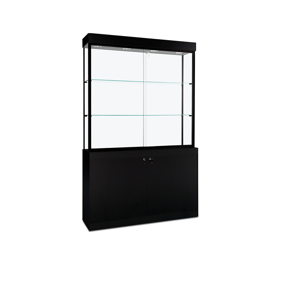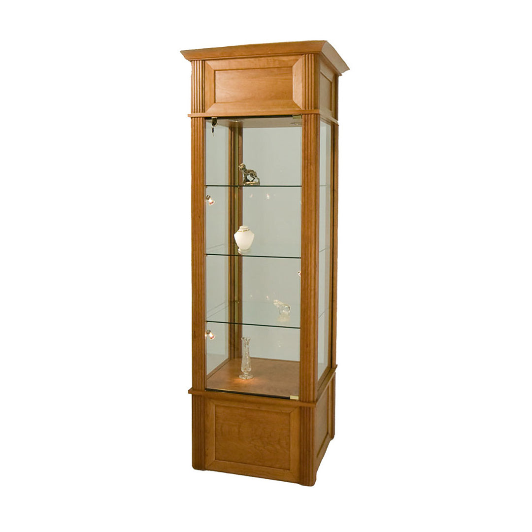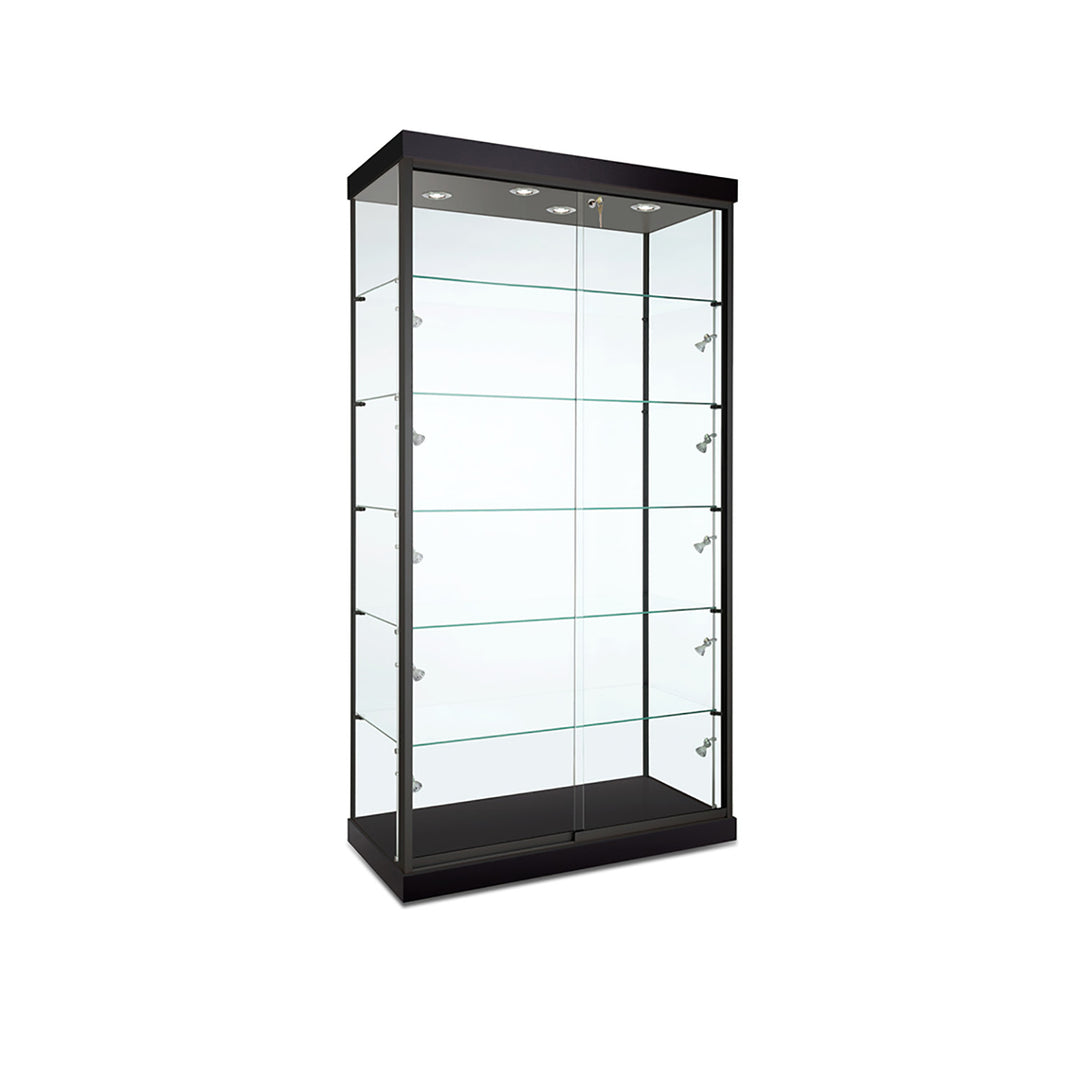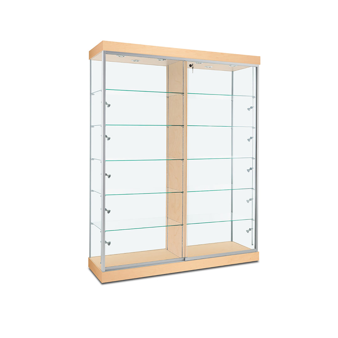 The Modern Series includes tower display cases, wall mounted display cases, wall display cases and small counter top display cases. Other types in this series include cash wrap counters and jewelry display cases. Made with aluminum frames and laminated bases and canopies as well as wood cases in several finishes. In addition to halogen top lights in the canopy, many have the option of adding side lights to further highlight the contents in the showcase display. These showcases can be used in a variety of settings such as retail stores, corporate lobby areas, schools or anywhere a clean modern display case is desired. Suitable for use with a range of merchandise such as jewelry, collectibles, electronics and any other fragile or high value items where there is a need for a secure attractive display.