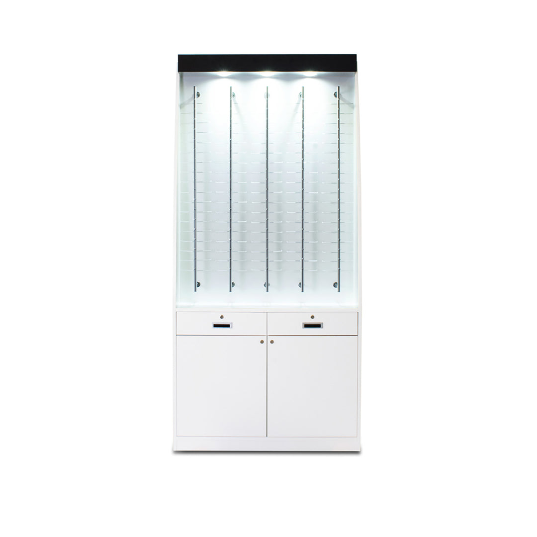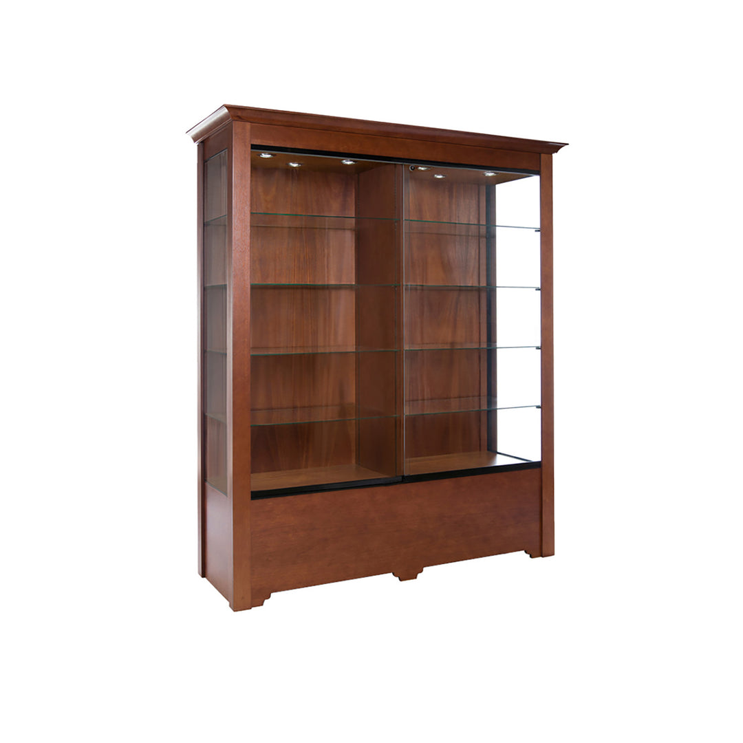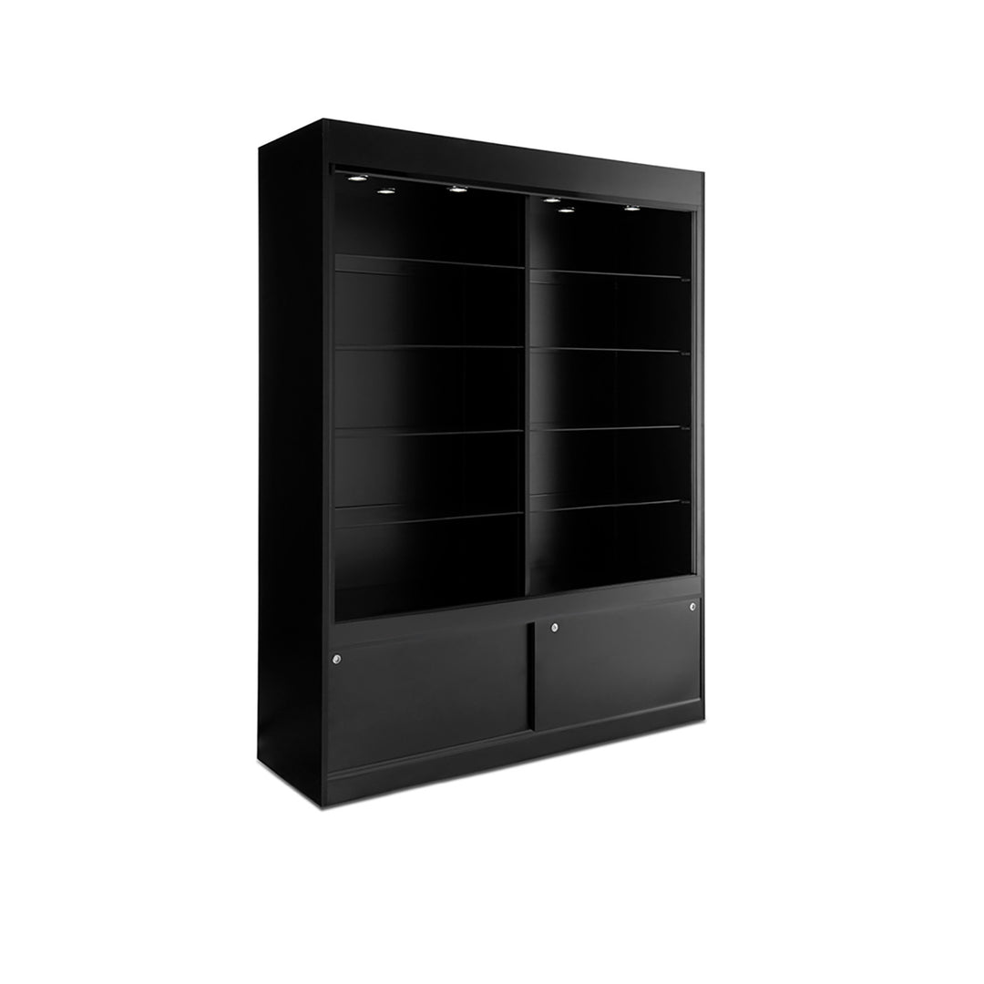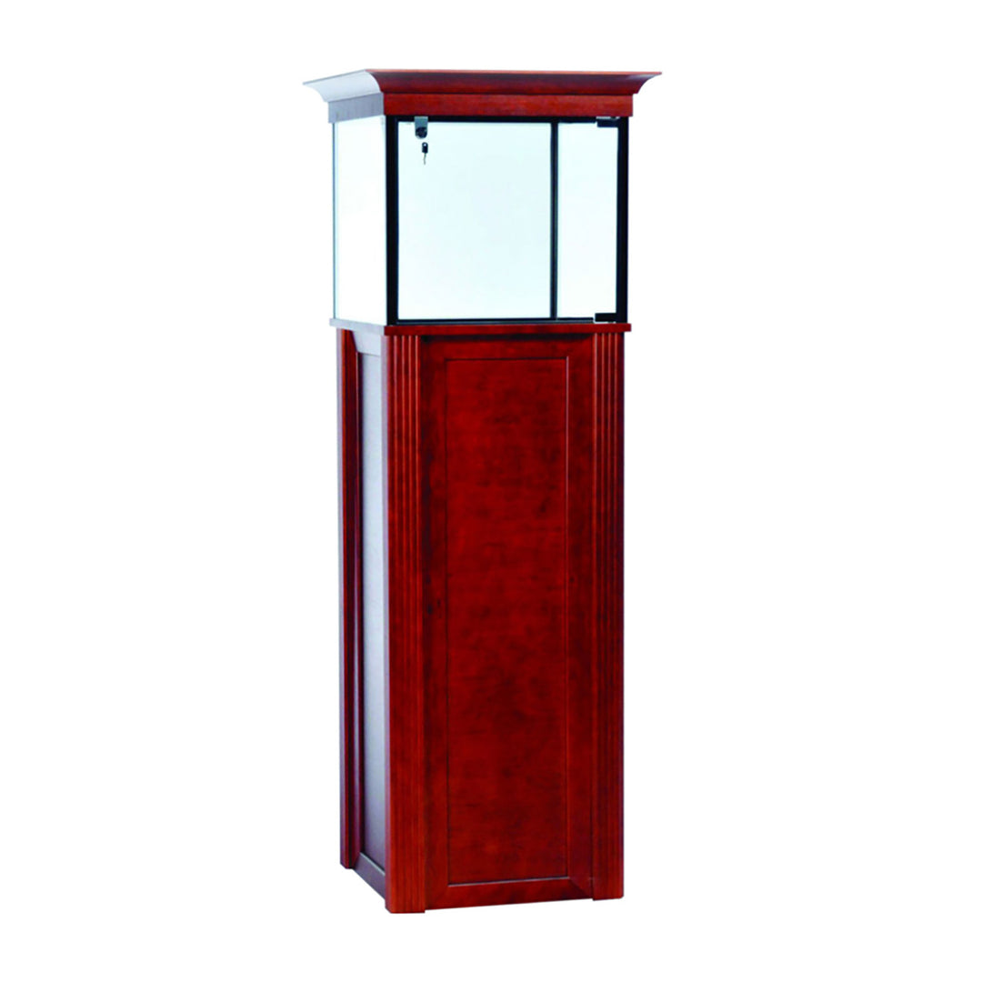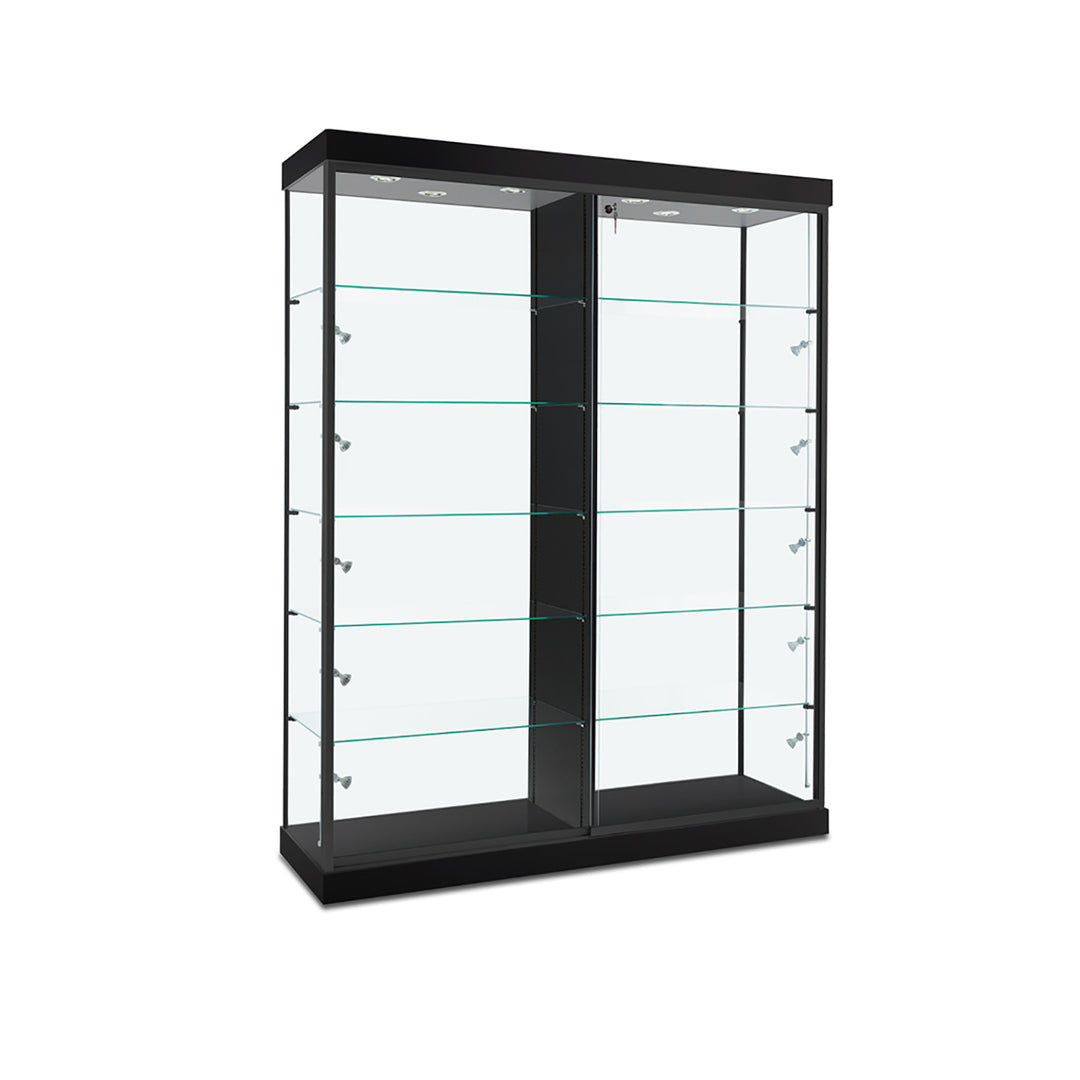 The Modern Series includes tower display cases, wall mounted display cases, wall display cases and small counter top display cases. Other types in this series include cash wrap counters and jewelry display cases. Made with aluminum frames and laminated bases and canopies as well as wood cases in several finishes. In addition to halogen top lights in the canopy, many have the option of adding side lights to further highlight the contents in the showcase display. These showcases can be used in a variety of settings such as retail stores, corporate lobby areas, schools or anywhere a clean modern display case is desired. Suitable for use with a range of merchandise such as jewelry, collectibles, electronics and any other fragile or high value items where there is a need for a secure attractive display.