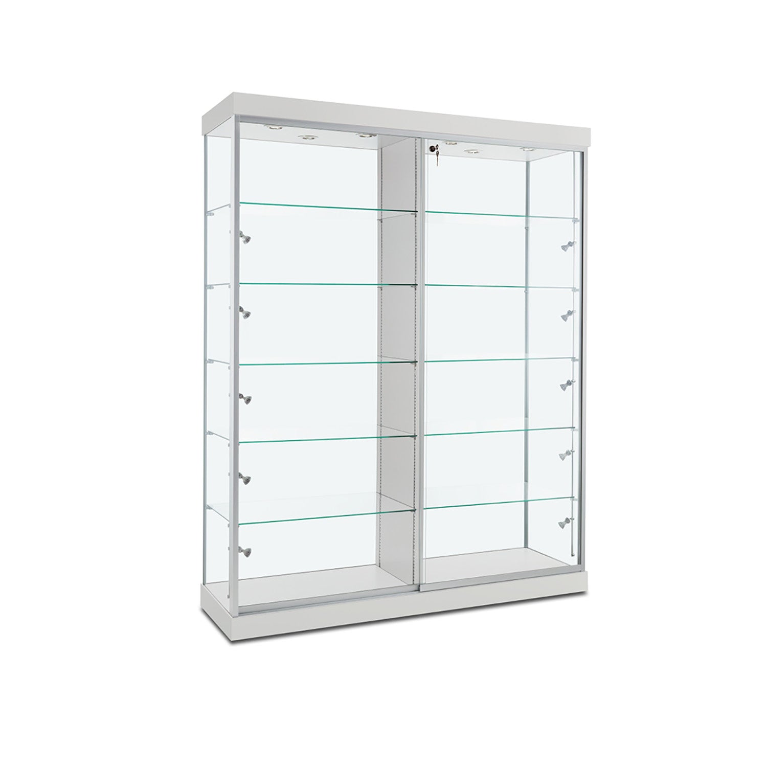 TheTE- TD200D 72" is a large trophy glass display cabinet with eight LED top lights to accent your objects. This large trophy glass display cabinet comes with a frame around the front of the tempered glass giving it a well-defined look. The center divider provides additional structural support. The TE-TD200D 72" is a large trophy glass display cabinet where your objects can be displayed in a safe and clean environment.