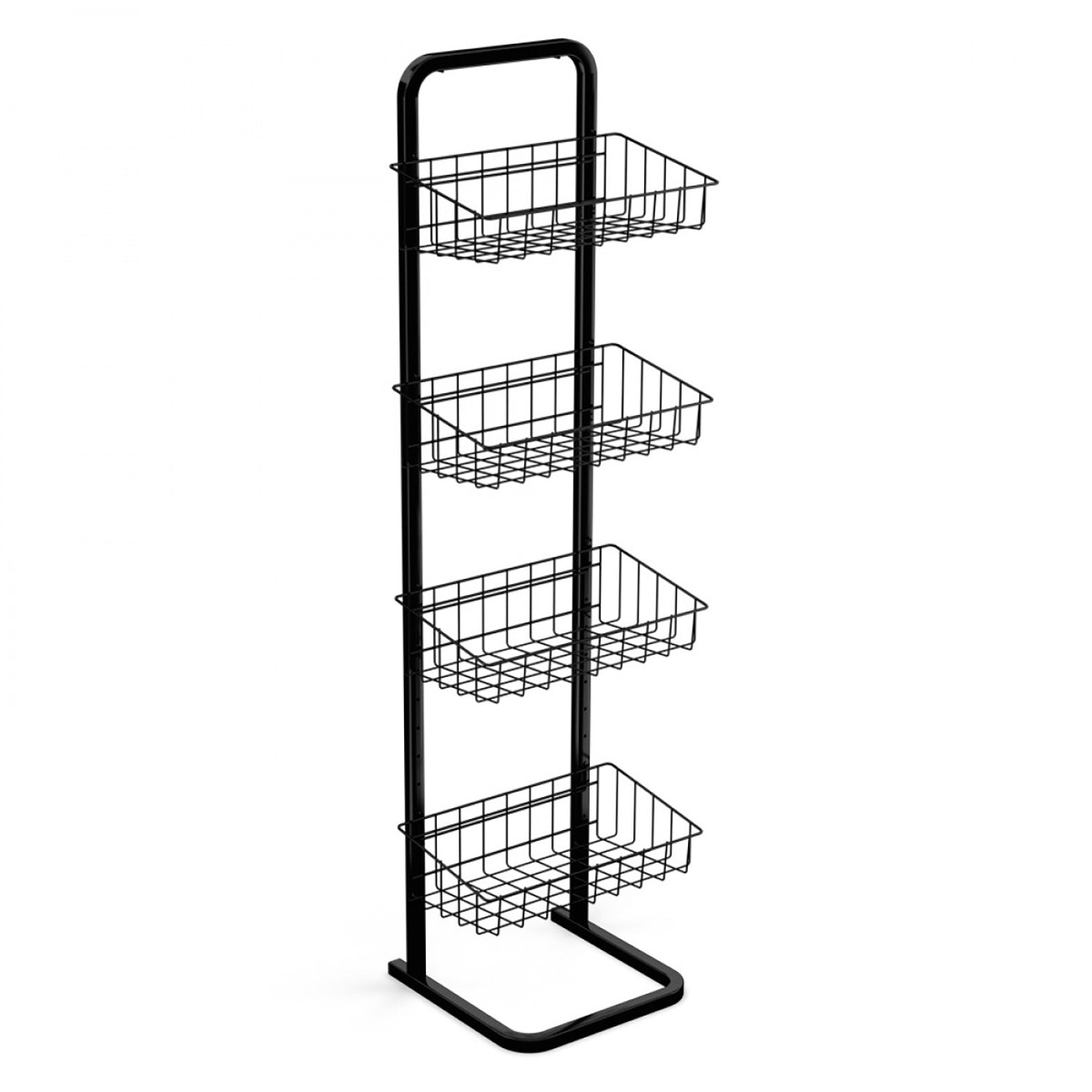 - 4 sturdy wire baskets hold retail merchandise of all types and sizes