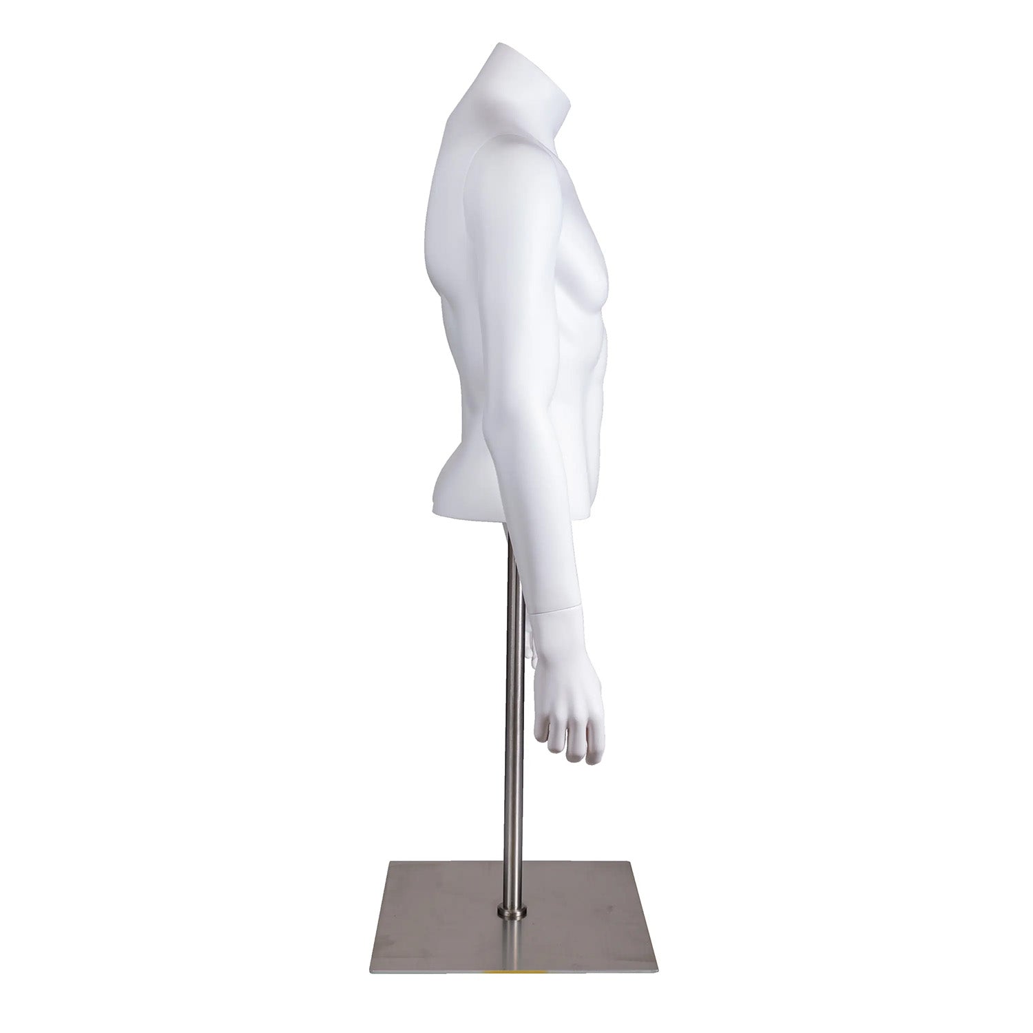 The headless male torso form is an economical solution for showcasing clothing items with style and precision. Its sculpted physique provides a striking canvas to present your apparel.