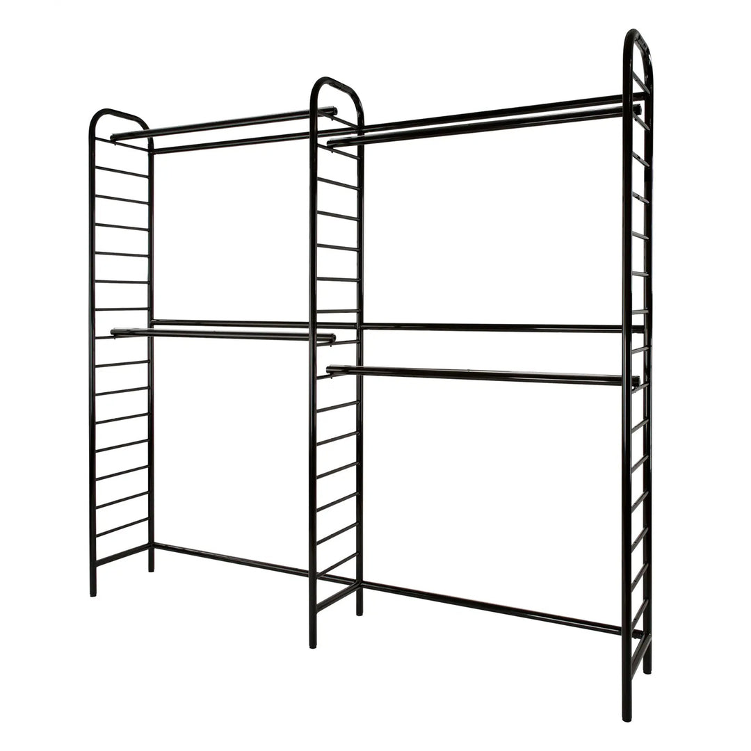 The Ladder retail display system is the granddaddy of all 'ladder-style' merchandisers and today it remains as popular with retailers as ever. This series features 1 ¼-inch, round tubing frames and is available as wall units, adjustable towers, and as freestanding racks. Today's Ladder System features a durable glossy black epoxy finish and is a versatile way of merchandising apparel on hangers or folded on shelves. Ladder display racks also include interchangeable options such as hangrails and shelving to extend your merchandising possibilities