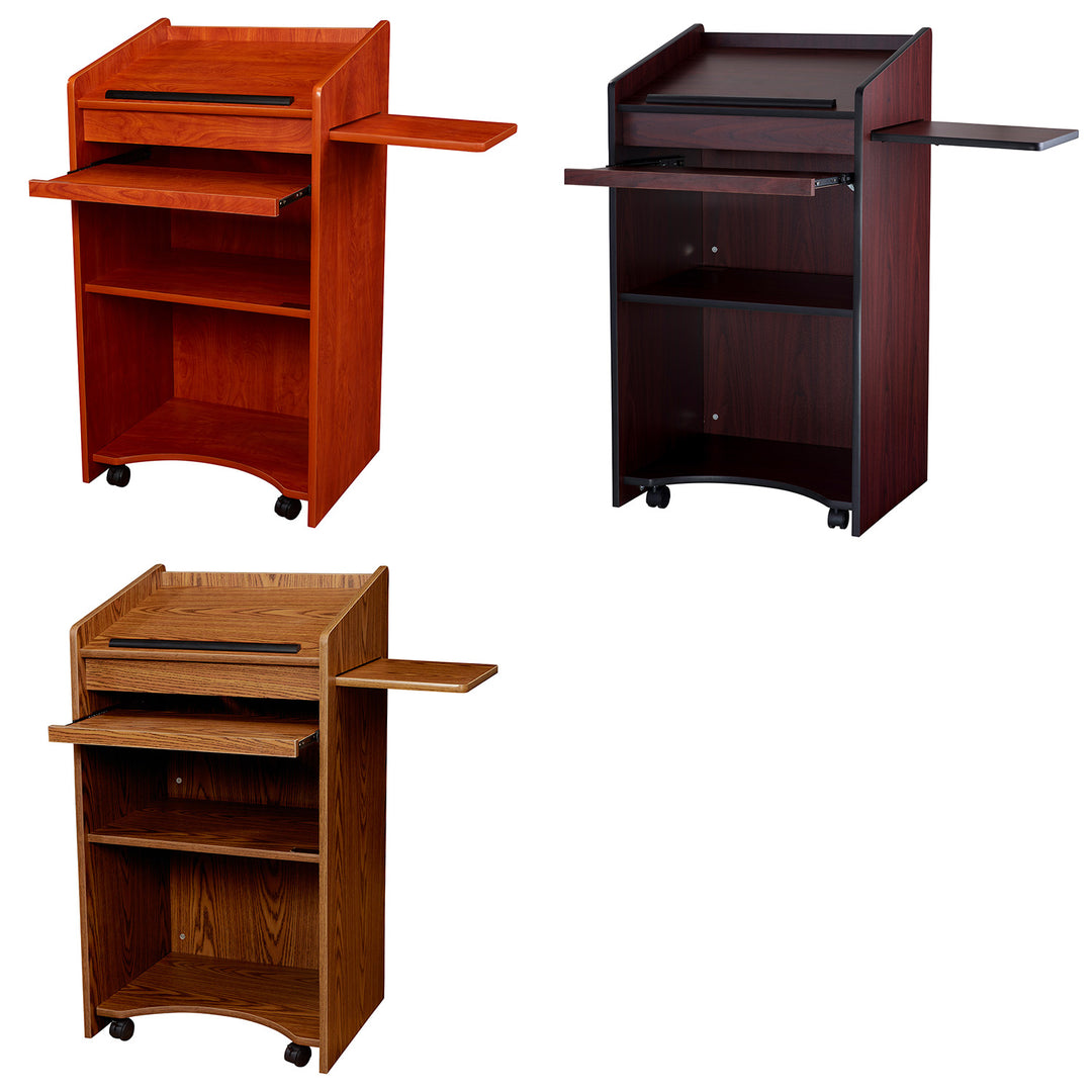 Allen Display offers quality lecterns and podiums for schools, universities, office environments or any organization in need of an attractive speaker lectern/podium. These lecterns are made from a variety of materials such as wood, clear acrylic and laminate. Our fixtures include floor lecterns, table top lecterns and adjustable height podiums. You can also choose models that are available with sound using a built-in amplifier and speakers.