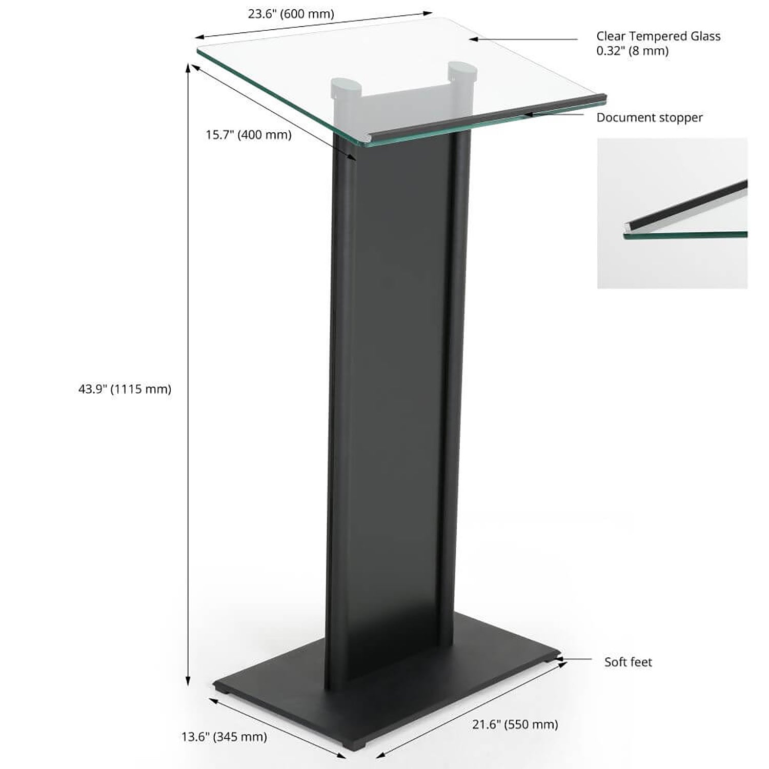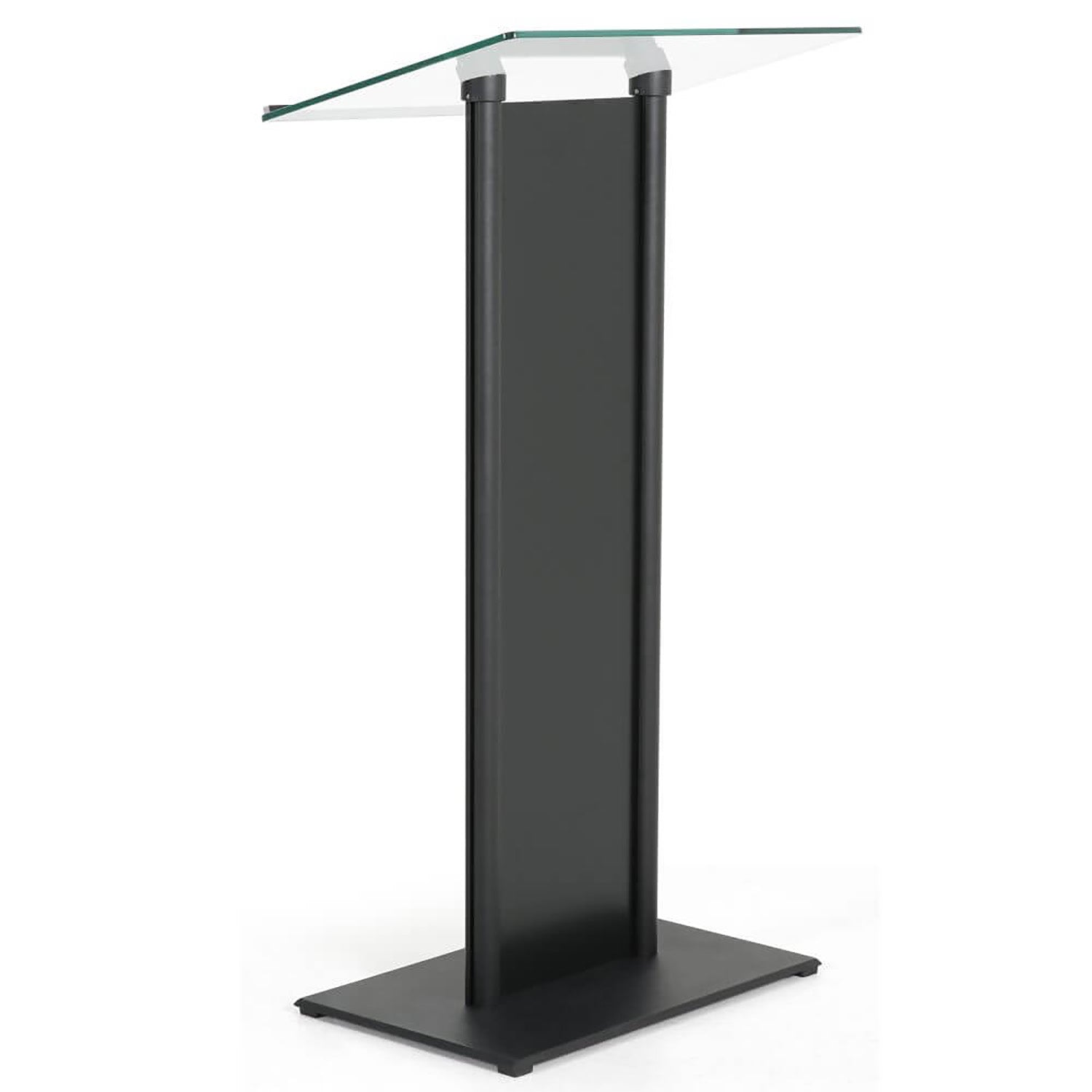 Tempered Clear Glass Podium with Aluminum Front Panel Black Lectern Pulpit Desk