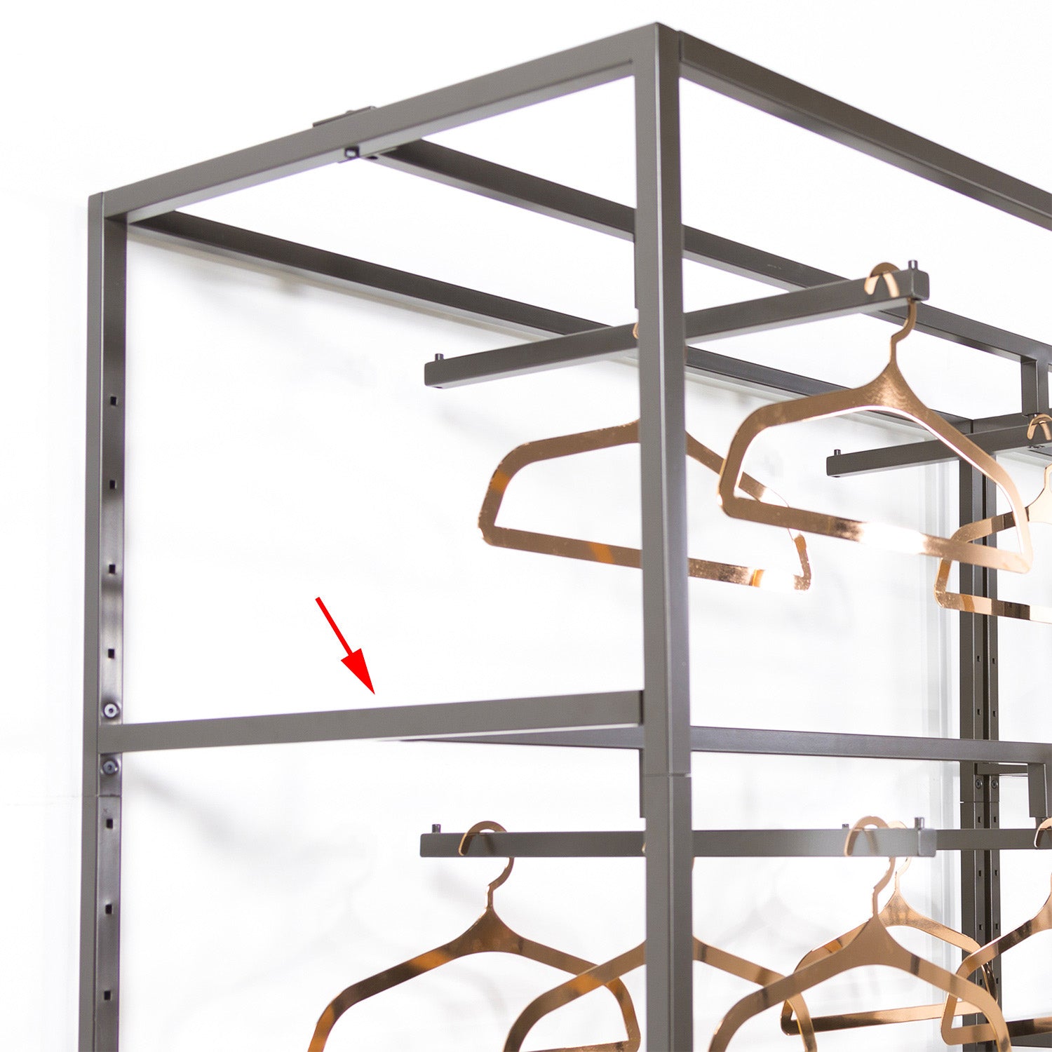 Retailers can expand their Linea collection merchandisers using our Linea Adjustable Swivel Hang Bar - Statuary Bronze which mounts easily using shelf clips to the top rail of the Linea Freestanding Merchandising Unit (E-LNWU2- sold separately). The hangbar measures 5" H x 54" W and is made from 1" square tubing with a drop down of 3" which may be varied to suit retailers' needs. Coordinate this accessory bar with the included hangbar to create a traditional straight hang bar, or use it by itself as a faceout. Assembly is quick and easy.