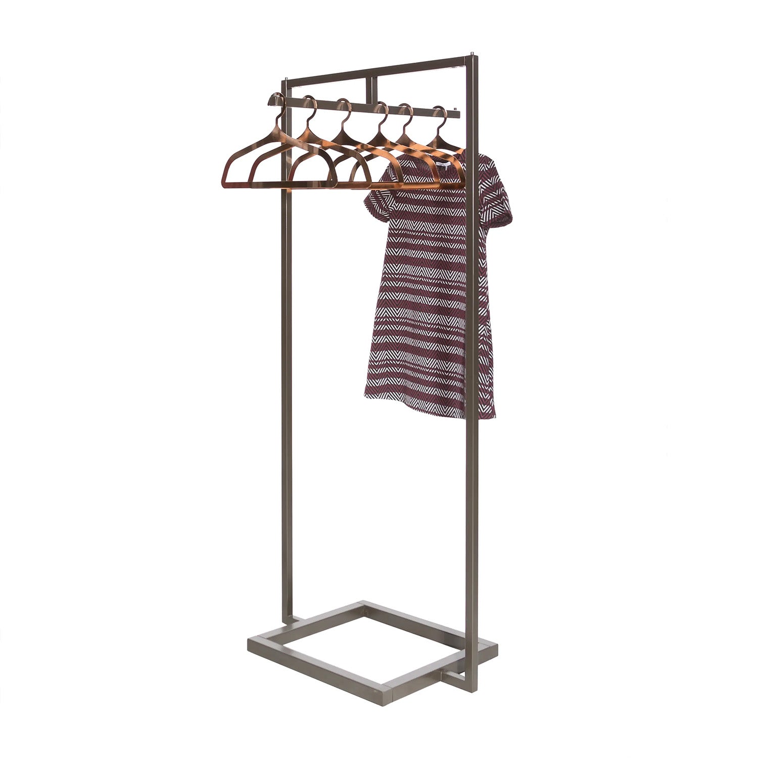 Where selling floor space is limited, such as in a boutique, our Linea Collection's Extended 2-Way Rack with Straight Bar provides an elegant solution. This unit measures 66"H x 30"W x 20"L with a 28" wide frame. The hangbar extends 1" on either side and allows shoppers to access hanging garments from either side. The unit's upscale appearance belies its strength. It is made from 1" square tubing and finished in a sophisticated Statuary Bronze-tone epoxy. For a graceful option, consider substituting the optional Linea Curved Hangbar (E-LN2WCHB sold separately), which will showcase up to 12 evening or bridal gowns on hangers. The floor rack includes levelers that may be adjusted to prevent wobbling. It is shipped flat to save on freight costs. Assembly is quick and easy.