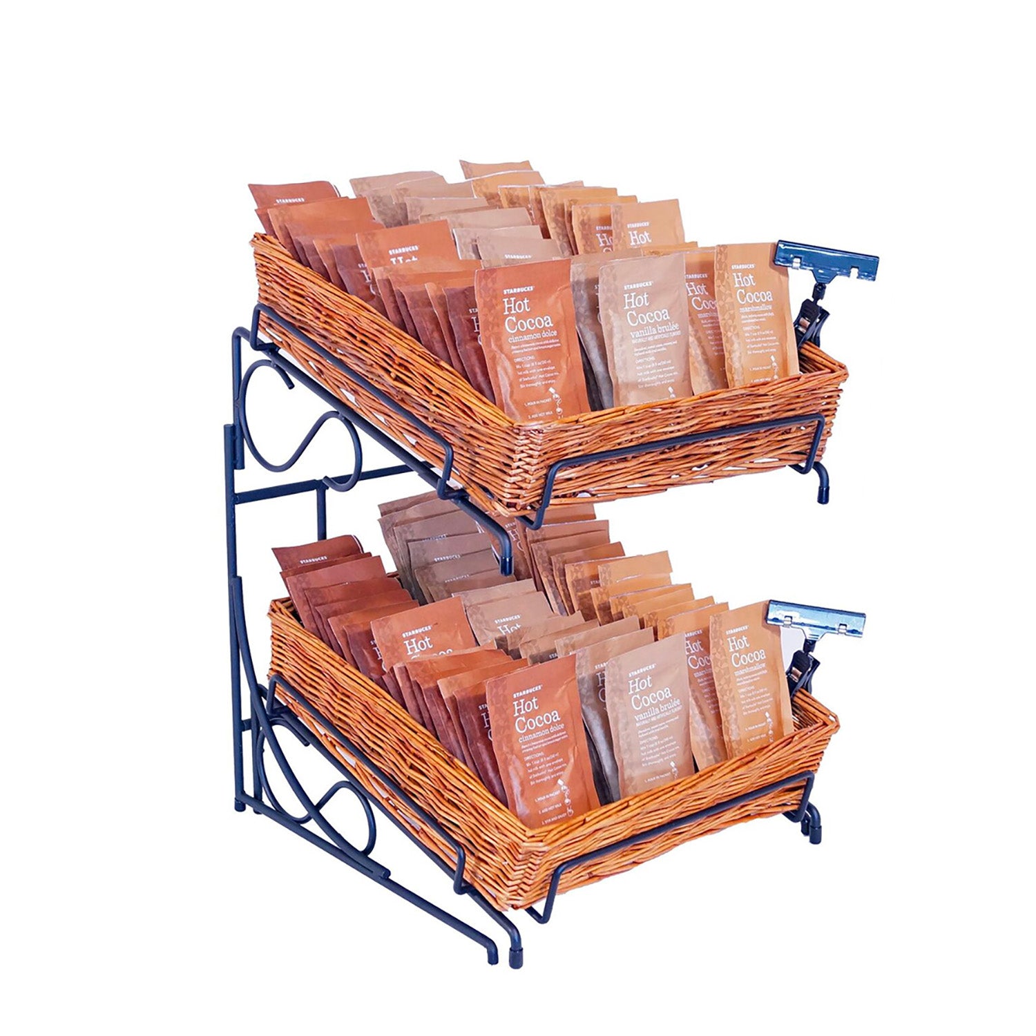 20"H 2-Tier/2-15" Square Willow Basket Counter Display Rack With Sign Clips