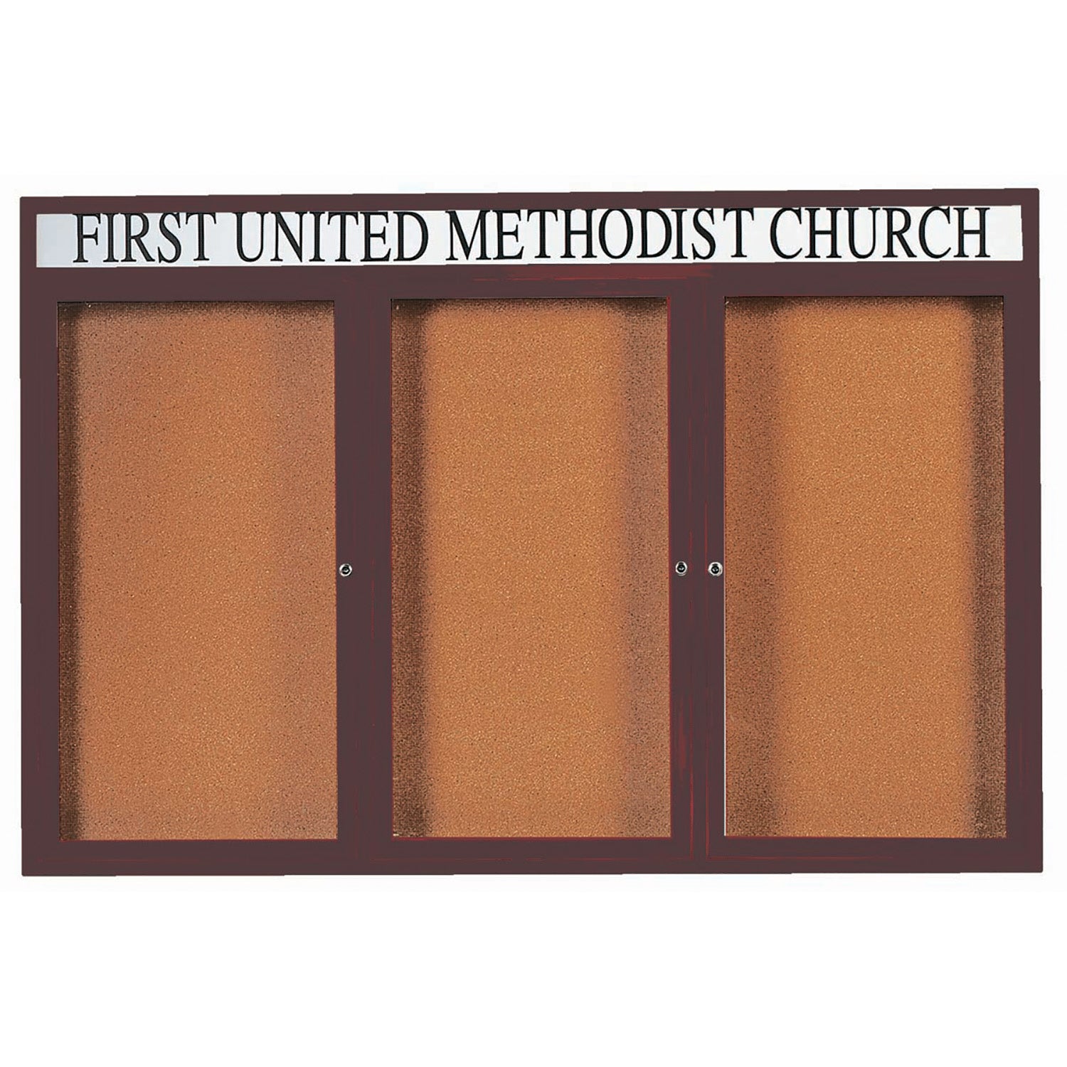 3 Door Enclosed Bulletin Board with Header - Non-Illuminated - Outdoor Usage