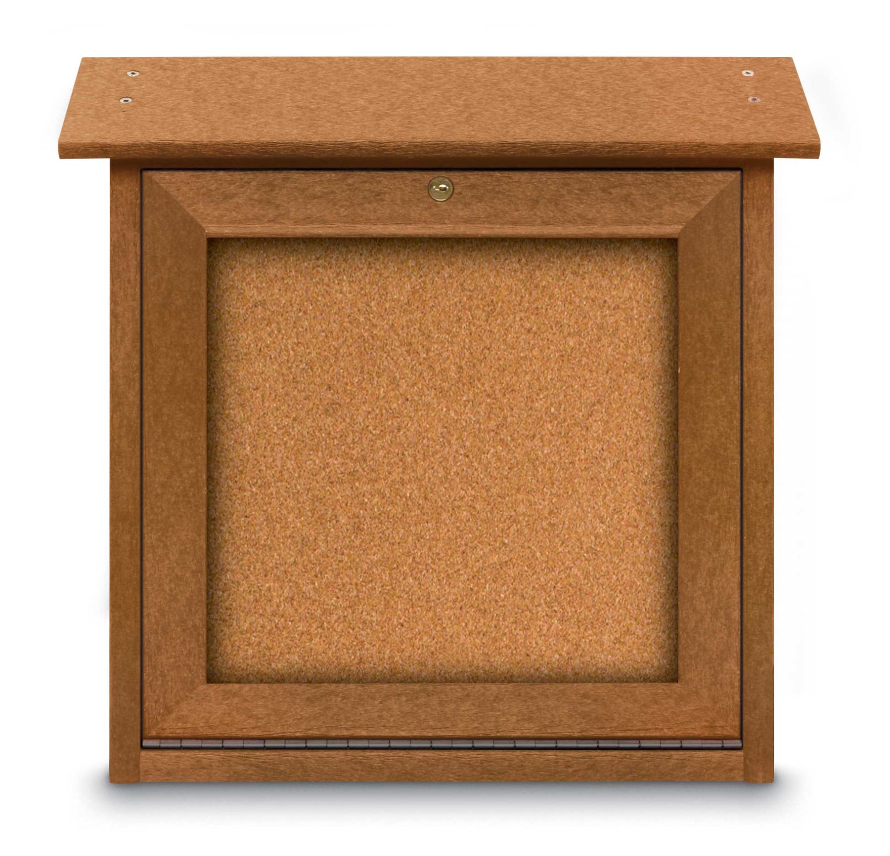 Mini Message Boards are perfect for university campuses, parks, golf courses, and other outdoor recreation areas. The board features a lockable door that is top-mounted on a full-length aluminum piano hinge. Due to its high-density polyethylene construction, it will not rot, splinter, or crack. The finished back panel looks great on posts and adds structural integrity to the message board. The board features a rain roof that is 1” around, except for the single sided units that can be mounted on a wall.