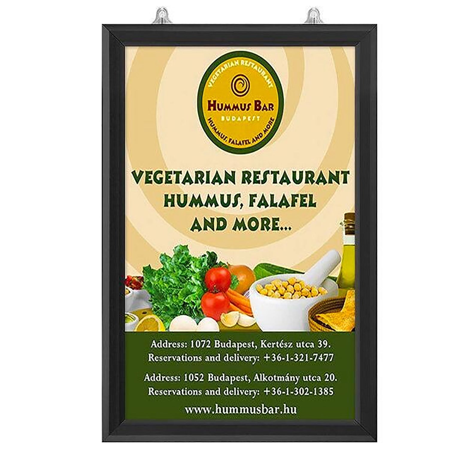 Ideal for indoor use, this versatile frame is perfect for showcasing marketing advertisements, posters, photos, signs, documents, restaurant menus, promotions, or important messages. Its ease of graphic changes makes it an excellent solution for dynamic display needs where content is updated frequently. The frame includes movable hangers for wall mounting and can also be hung on a window using suction cups for maximum exposure.