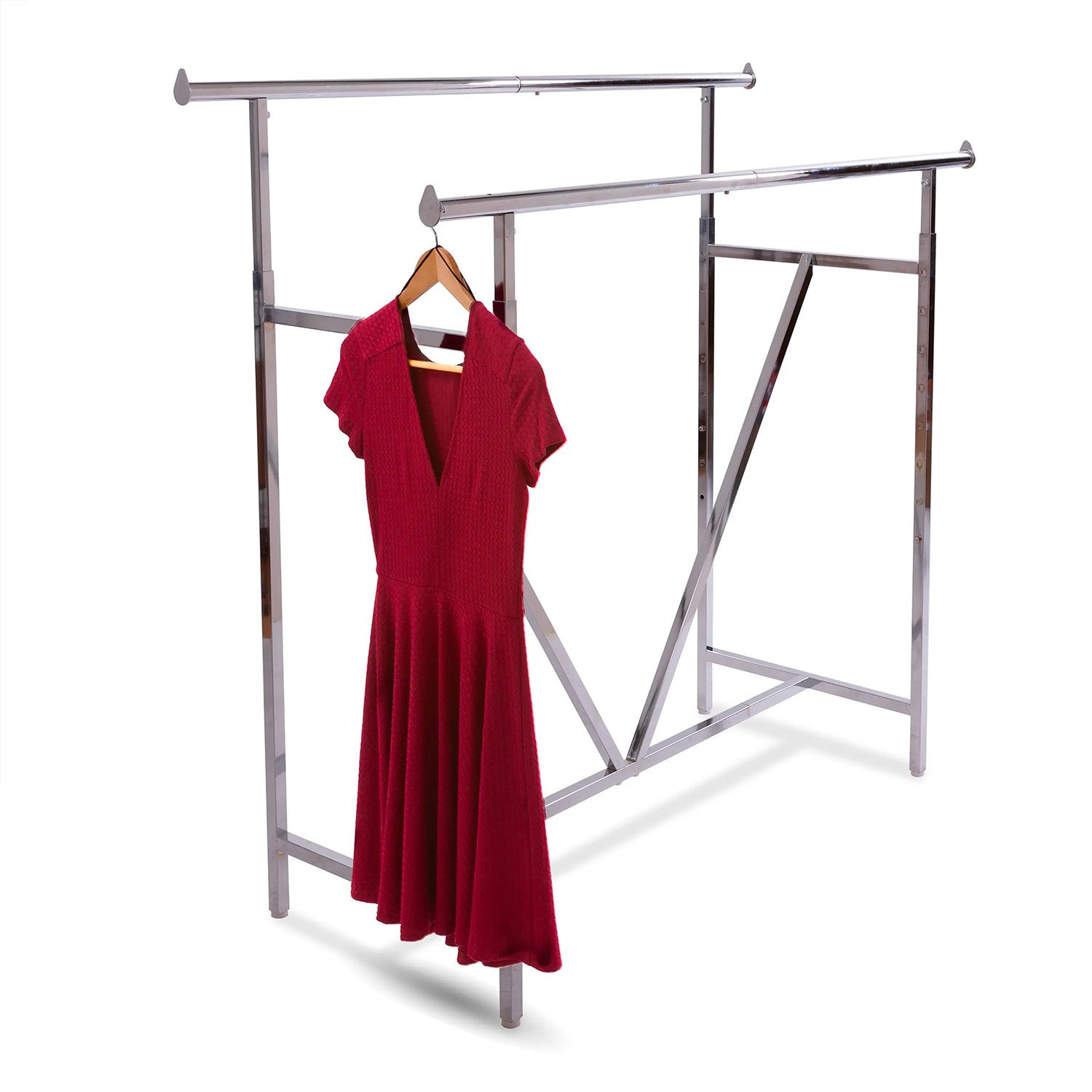 Hangrail height adjusts at every 3" increment from 49" - 70" and includes adjustable levelers. Hangrails have holes drilled for convienent use with swedged stem signholders and are made of 1¼" round tubing with reinforcing "V" brace in the center. Teardrop end caps are made for use with KH1 add-on hangrails.