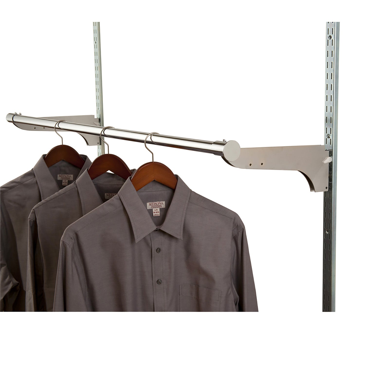 For use with surface mount double-slotted standards with 1/2" slots on 1" centers. Made of 1/2" x 1-1/2" rectangular tubing. Can not be used with recessed standards.