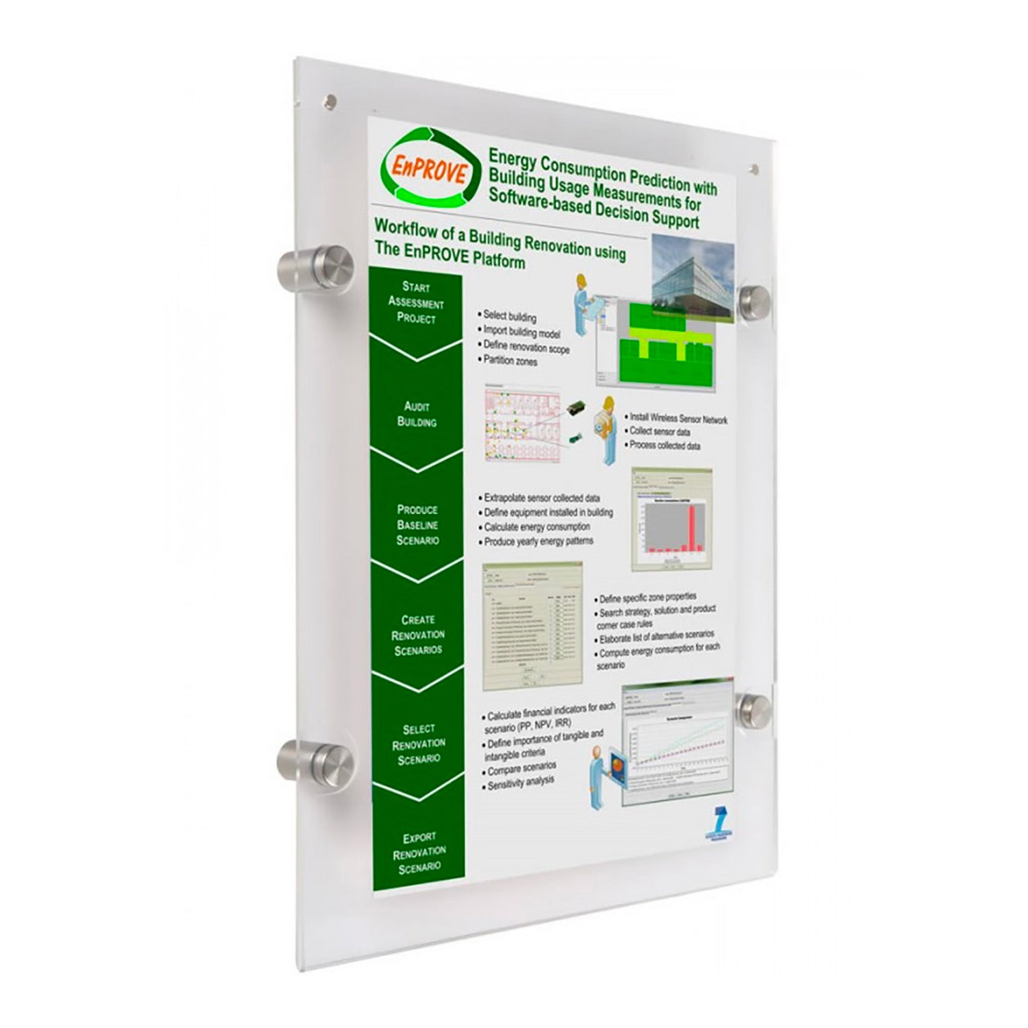 This wall mount clear acrylic frame with standoff hardware and magnets is a great marketing tool for any type of business or even for personal use. These acrylic frames can display flyers, certifications, photos, menus, and any other graphics.