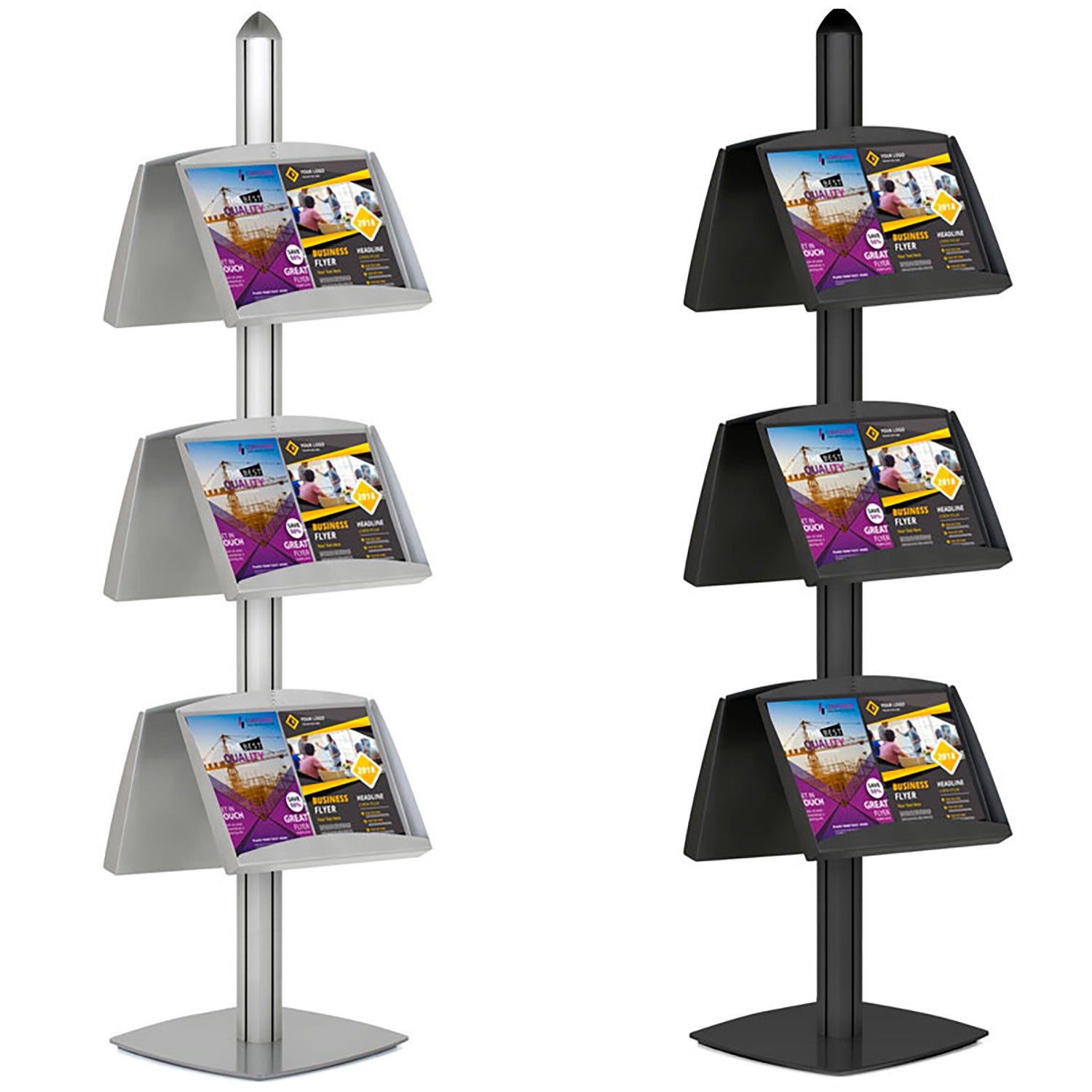Built for stability in public areas, the display rests on a heavy-duty, durable steel base. Its multifunctional and adaptable design makes this literature stand an ideal choice for advertising and promotional purposes in various indoor settings, including commercial and business environments. It allows users to present marketing content effectively according to their specific needs.
